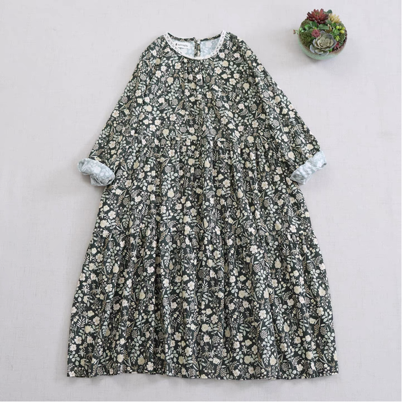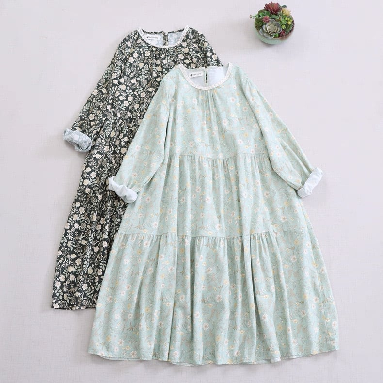 小花柄 ティアードデザイン ロングワンピース 3color fu0923