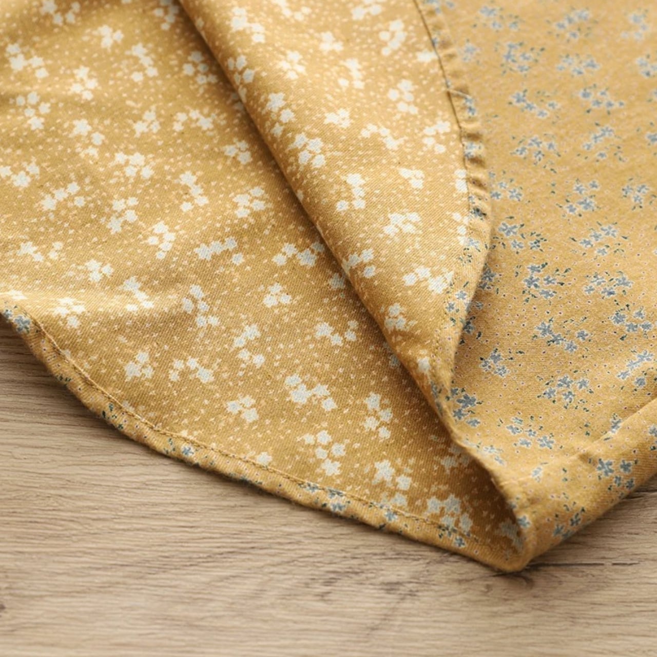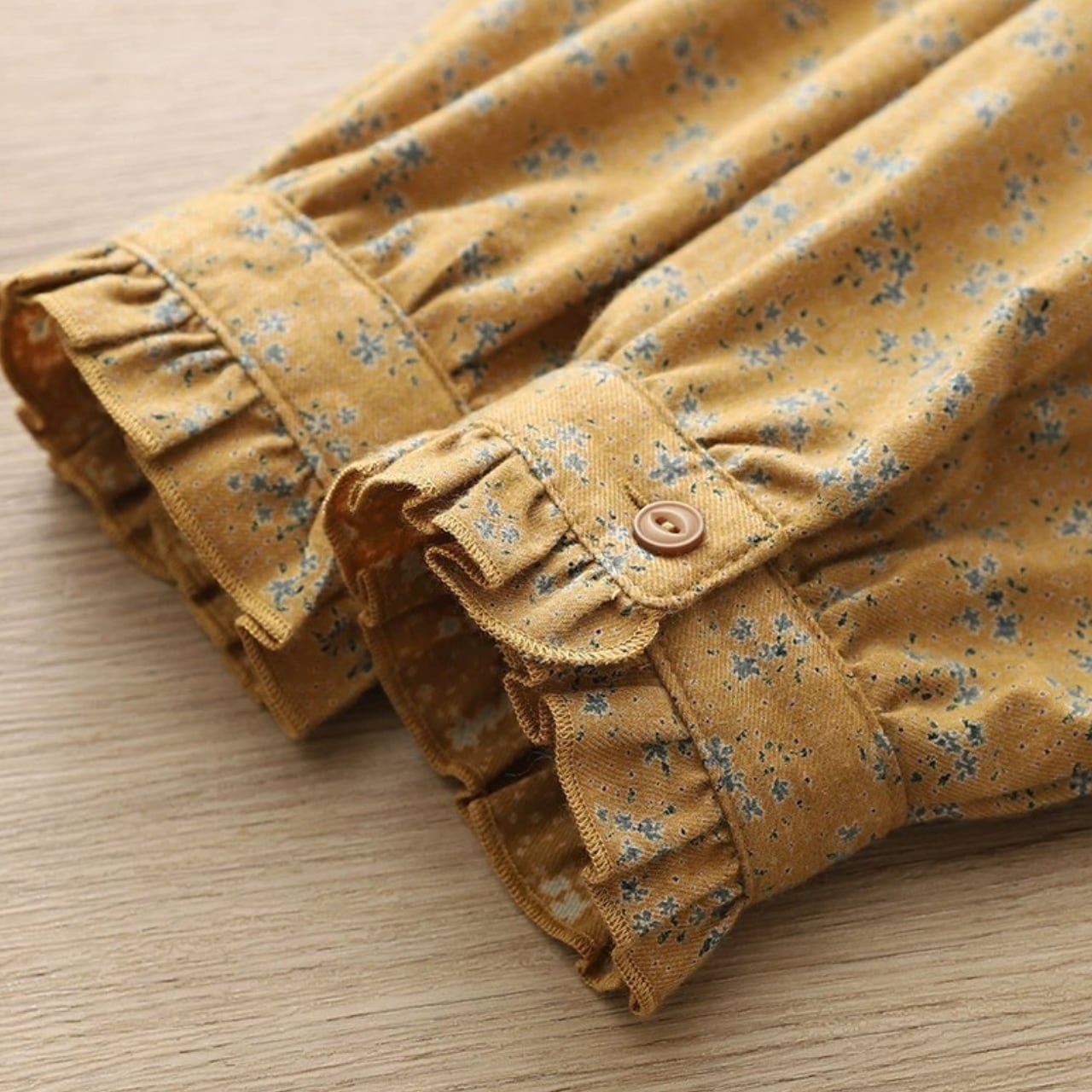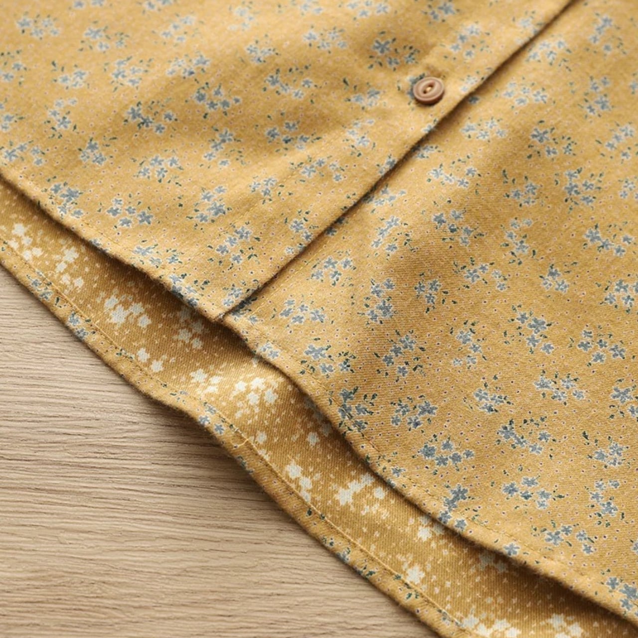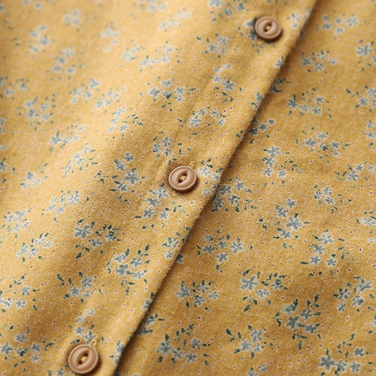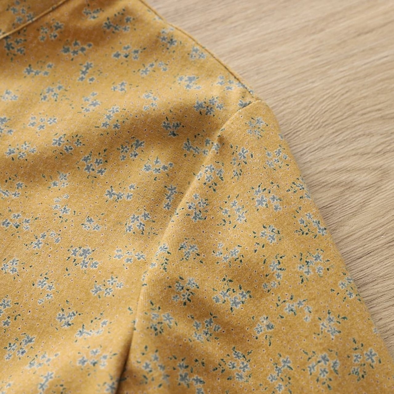 首元にさりげなくあしらったフリルがポイントの小花柄ブラウス。