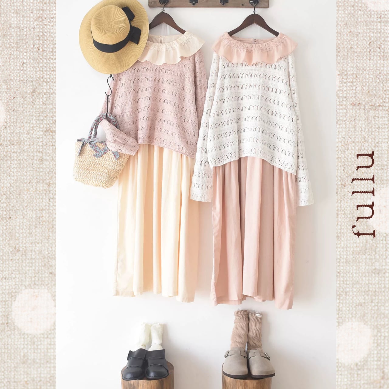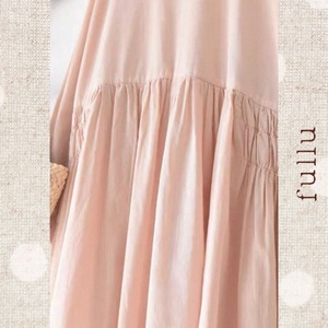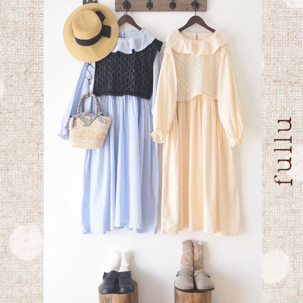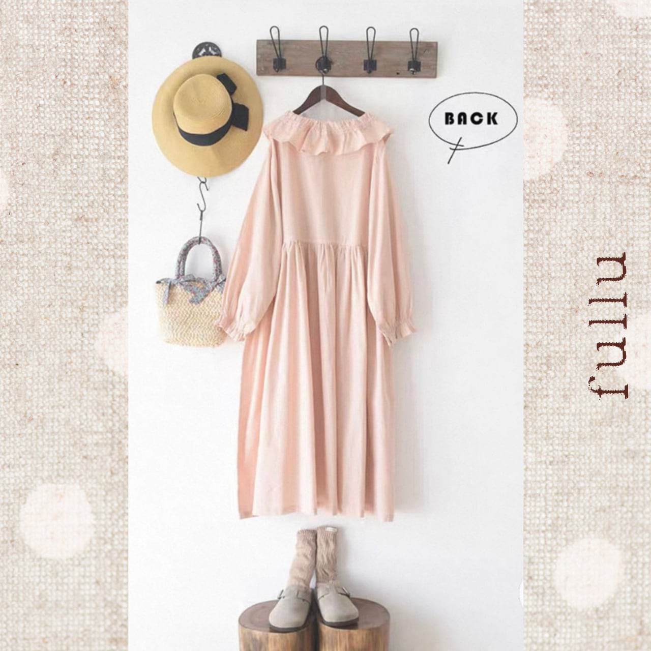 パステルカラー フリルネック切替ロングワンピース 3color fu0940