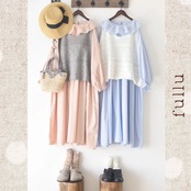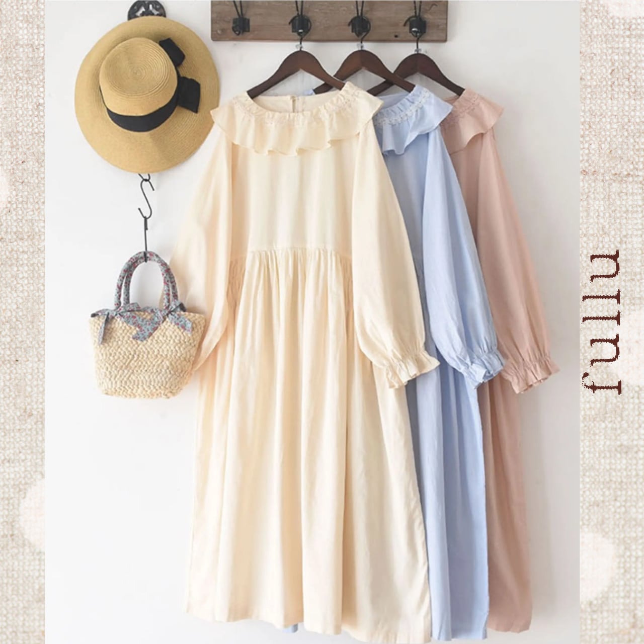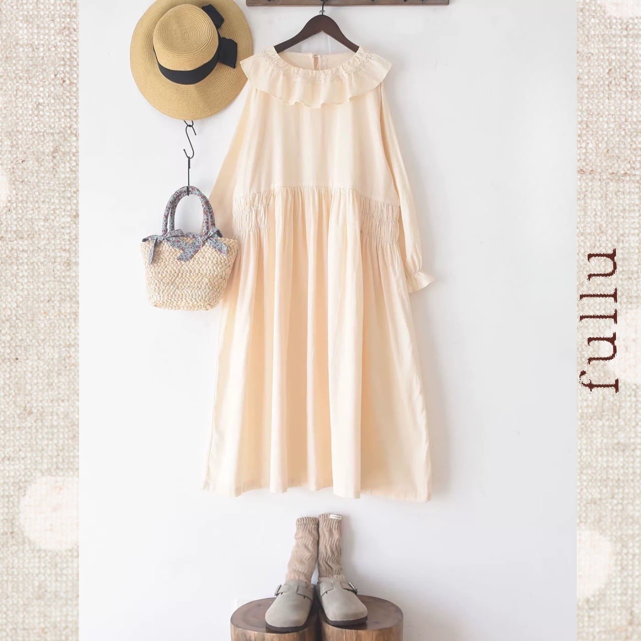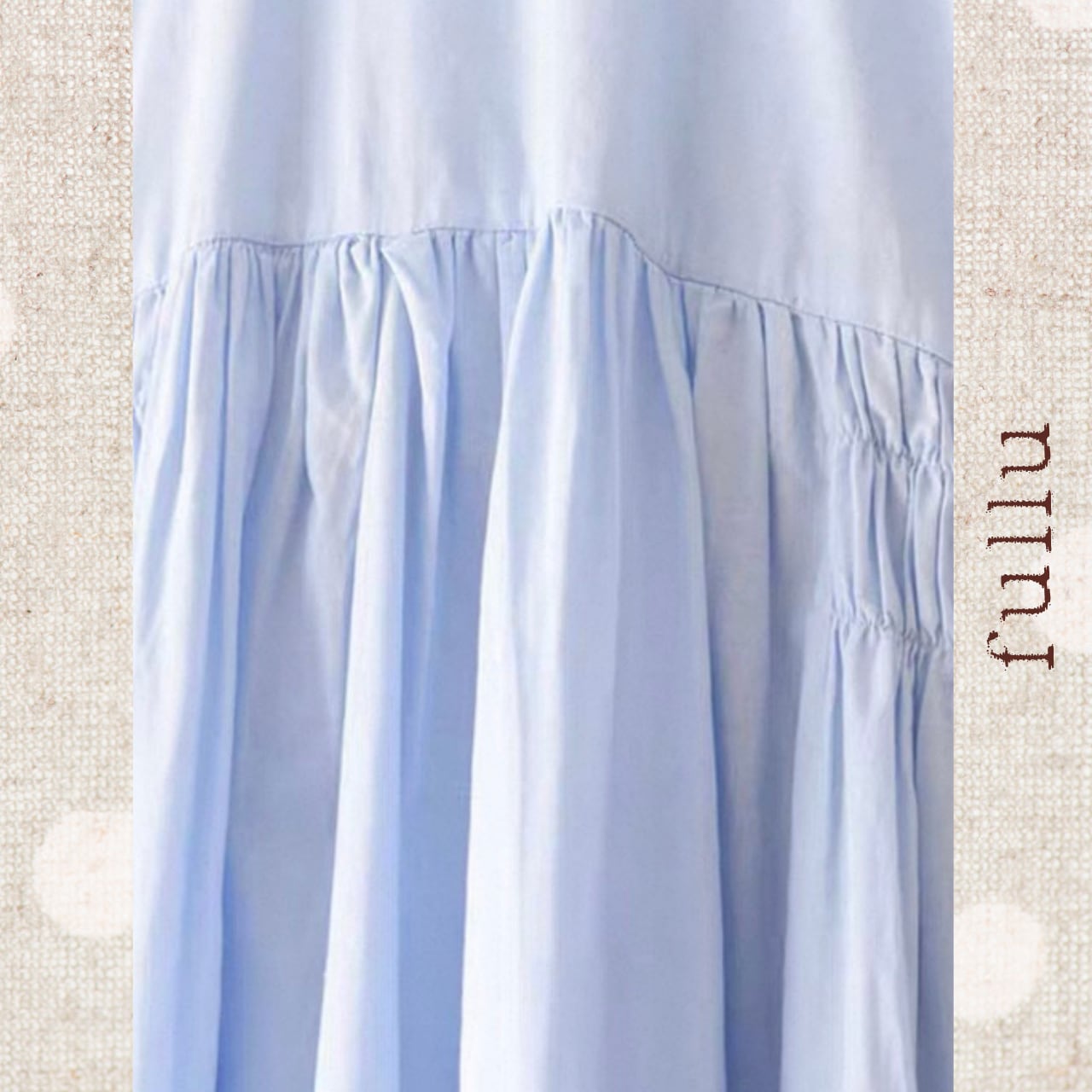 パステルカラー フリルネック切替ロングワンピース 3color fu0940