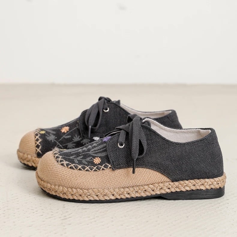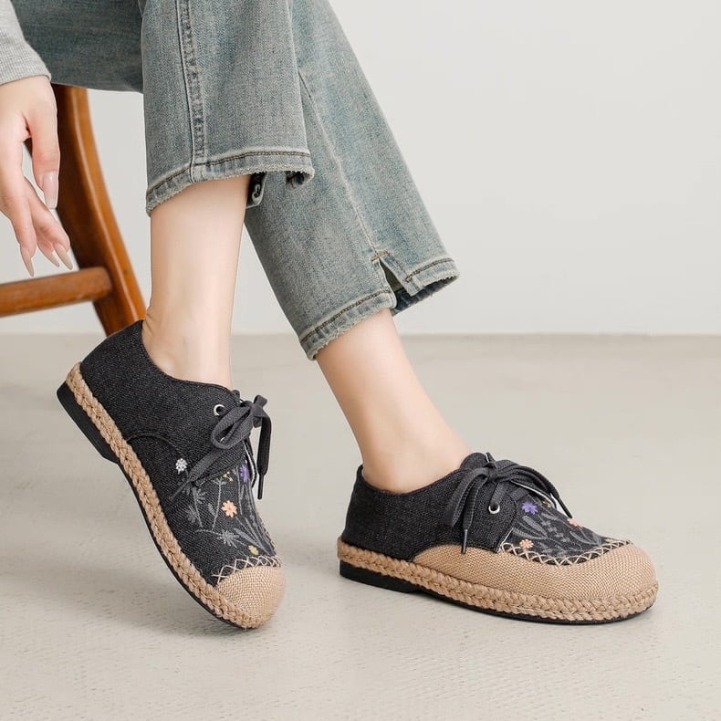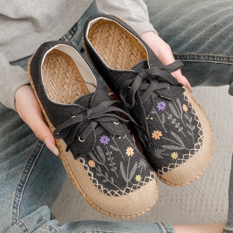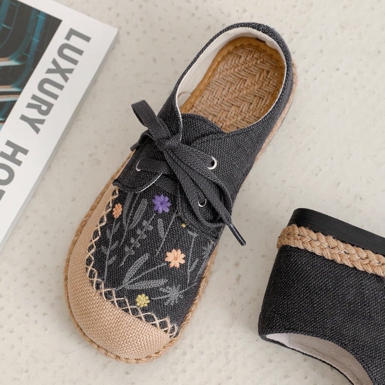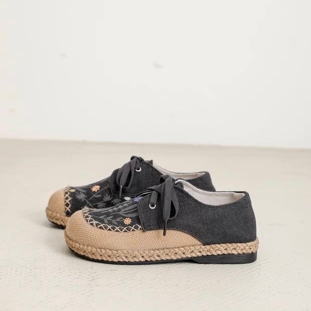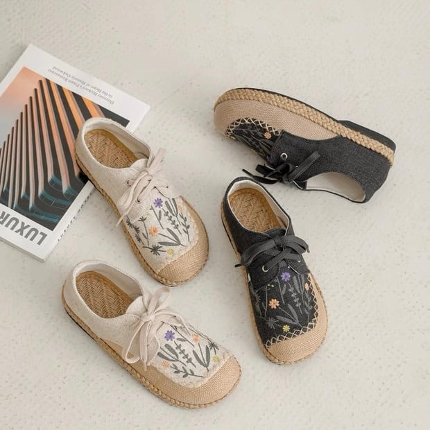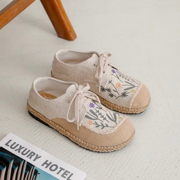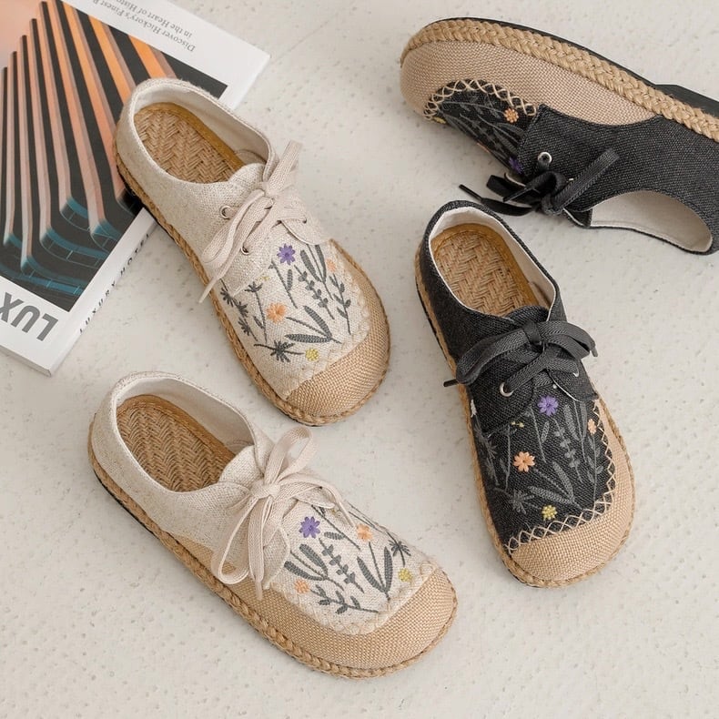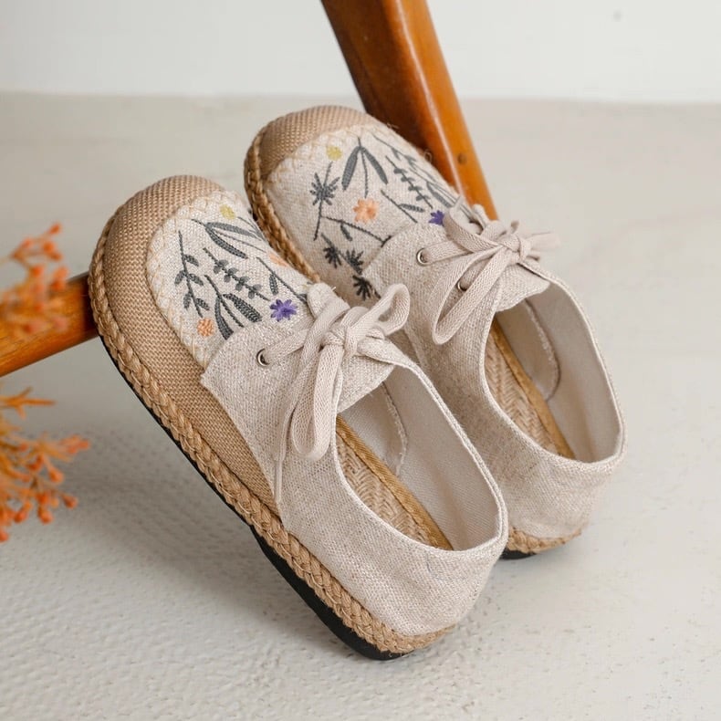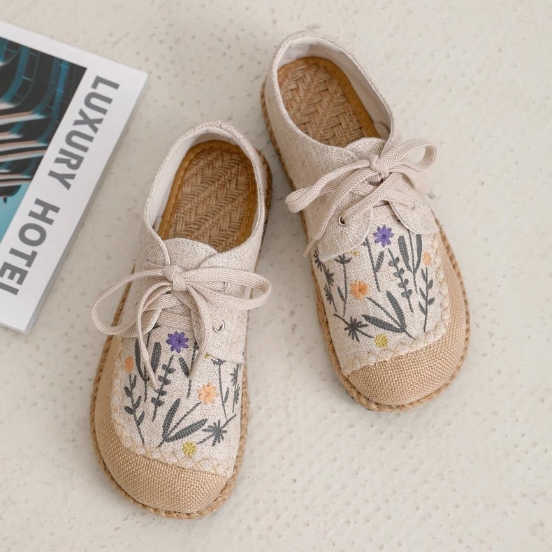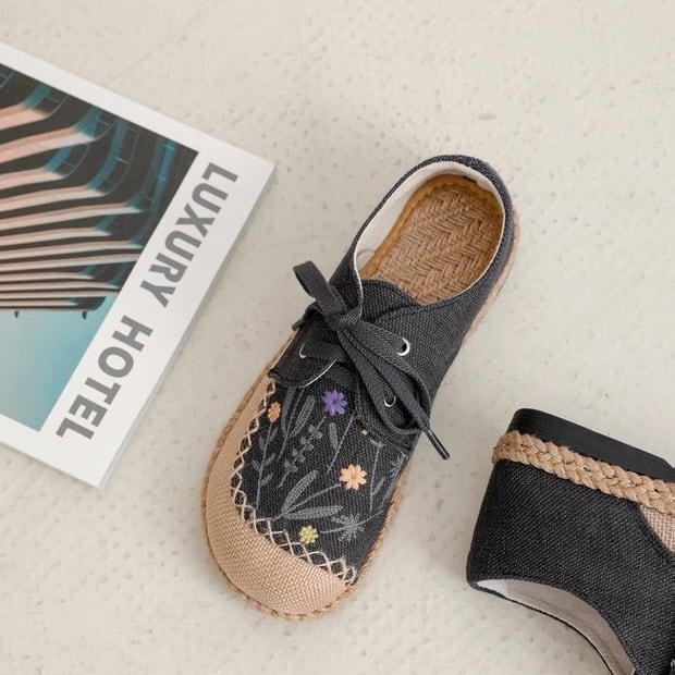 野花刺繍のレースアップエスパドリーユ 2color fu0945
