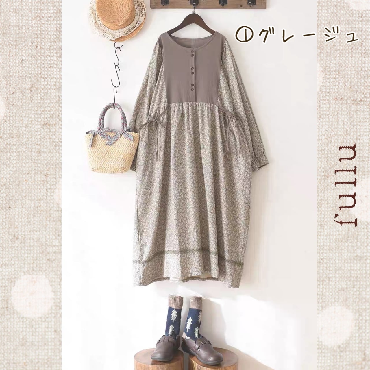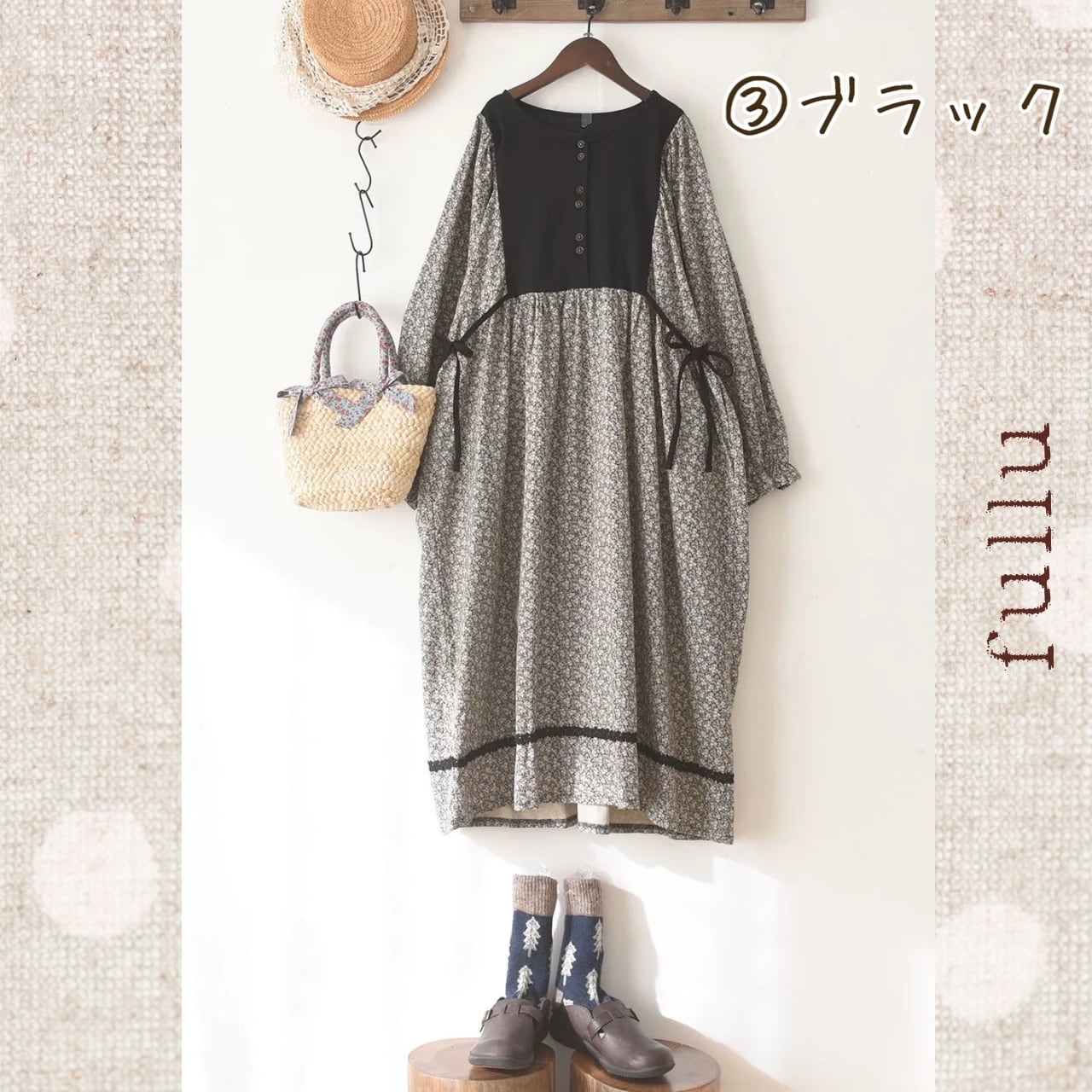 小花切替ボタンワンピース 3color fu0947
