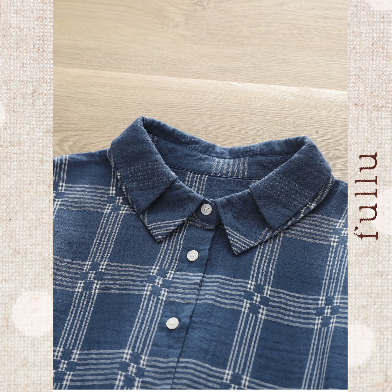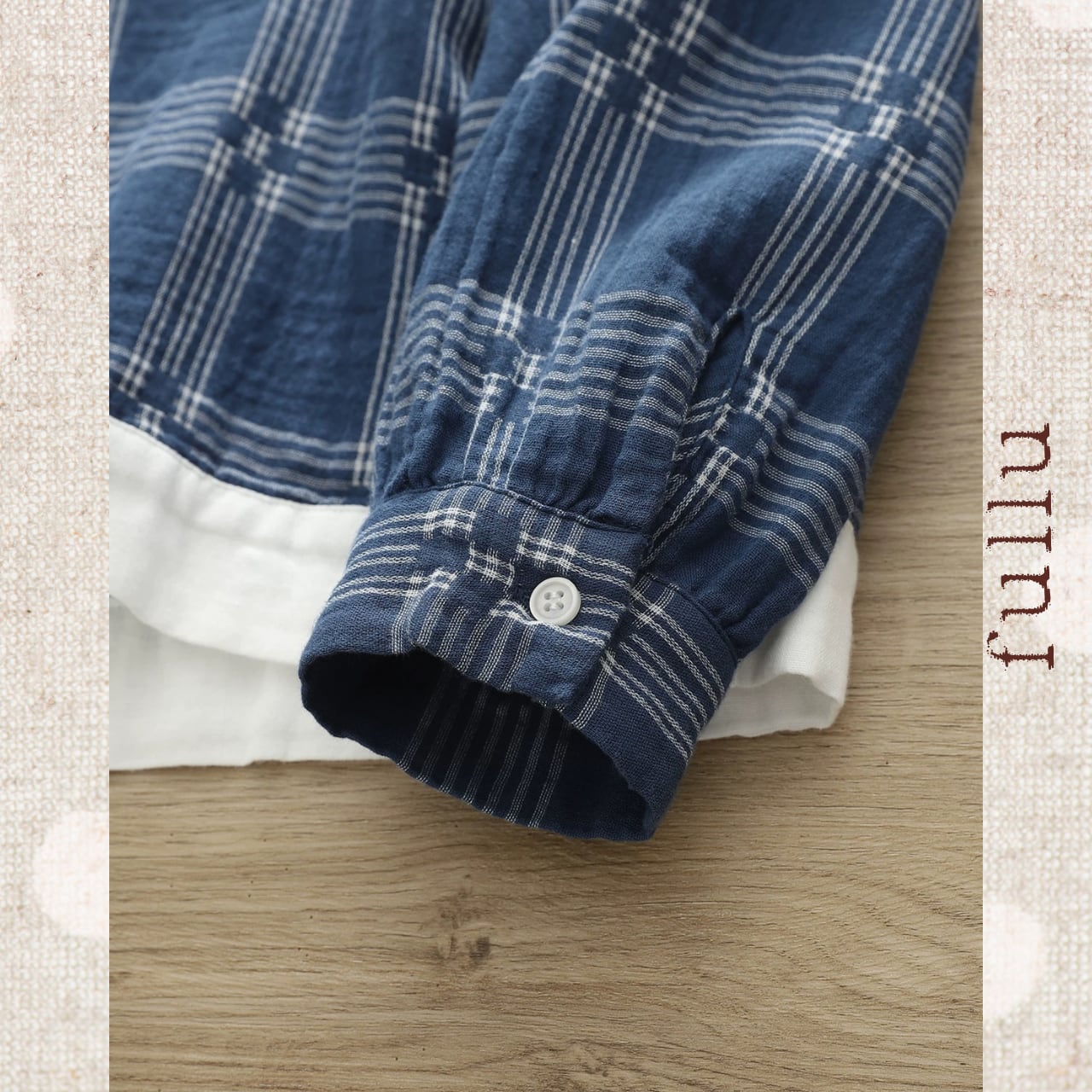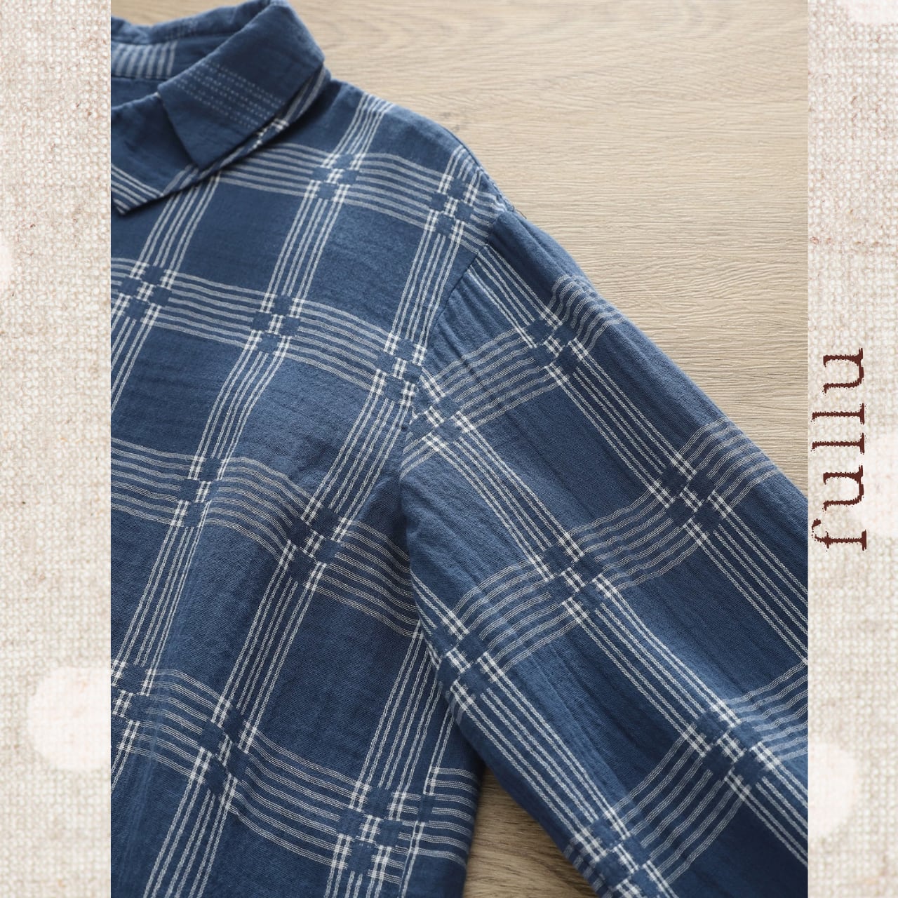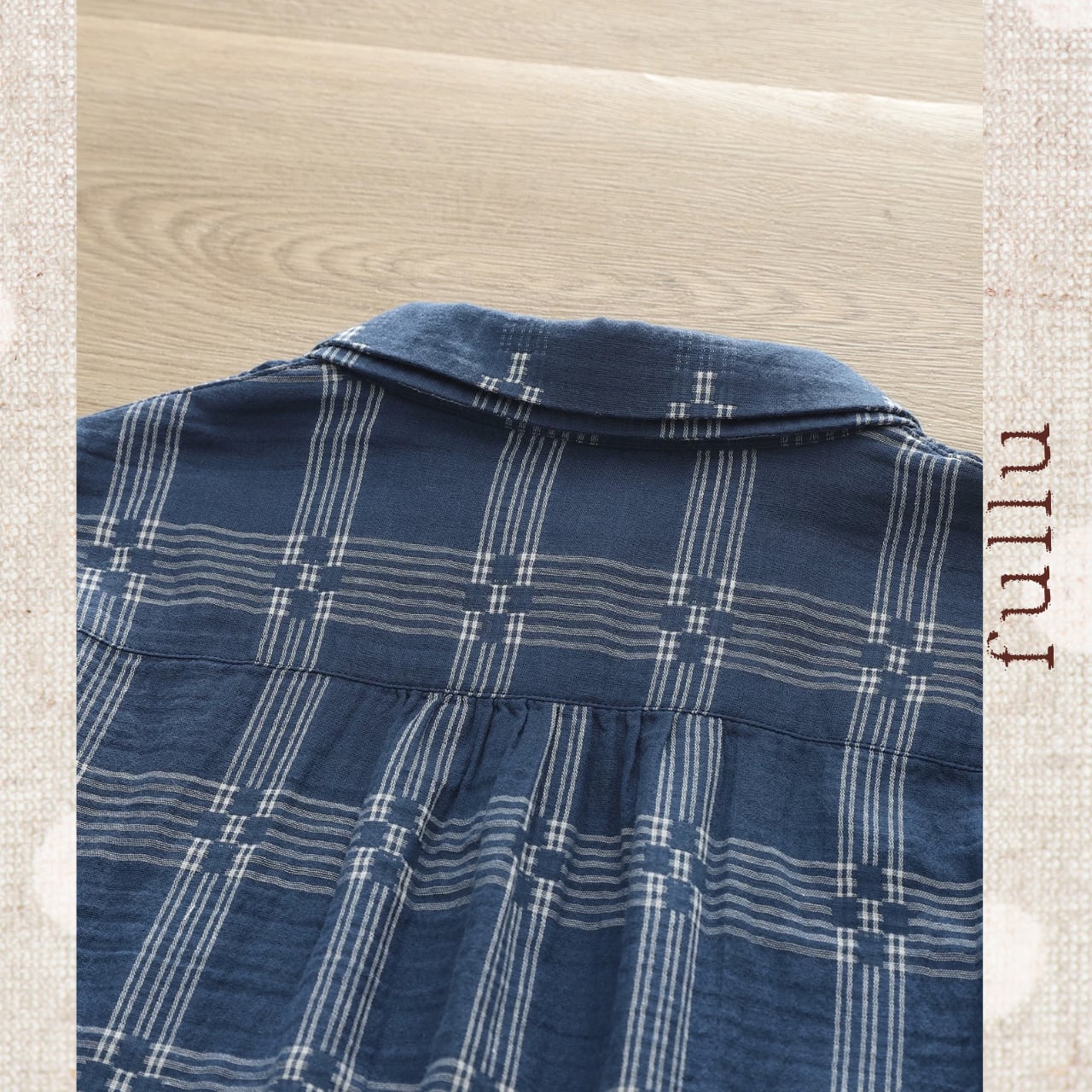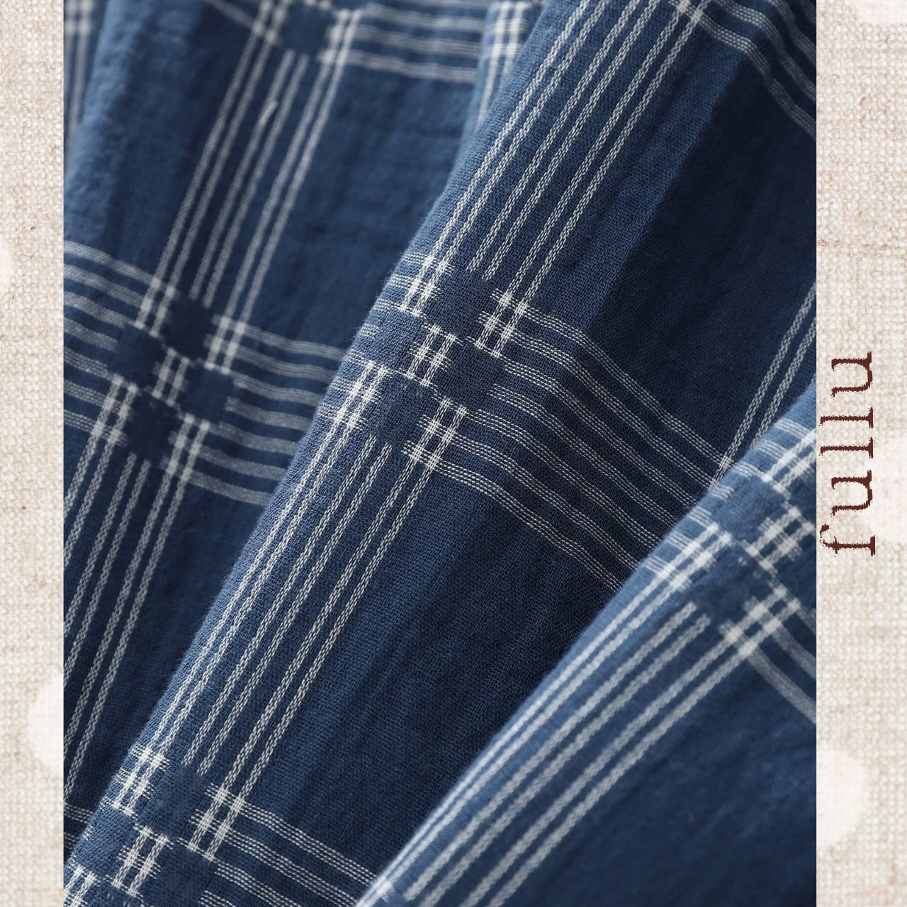 落ち着いたネイビーベースに、細めのチェック柄をあしらった一枚。