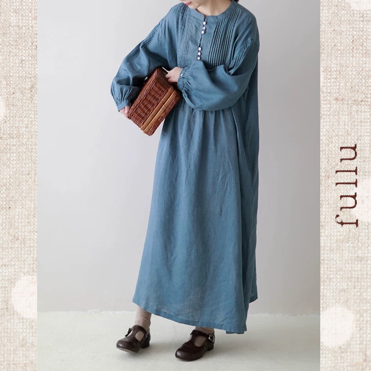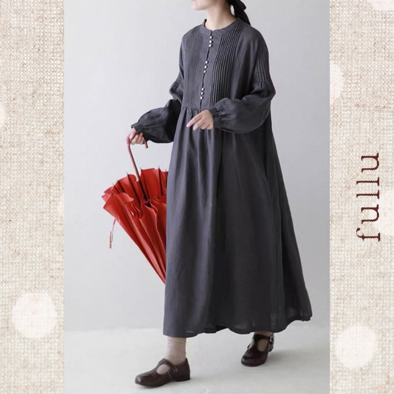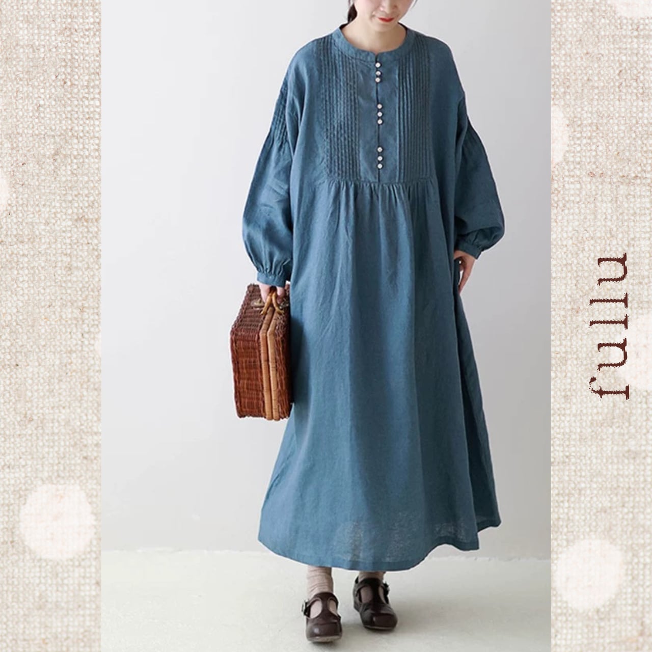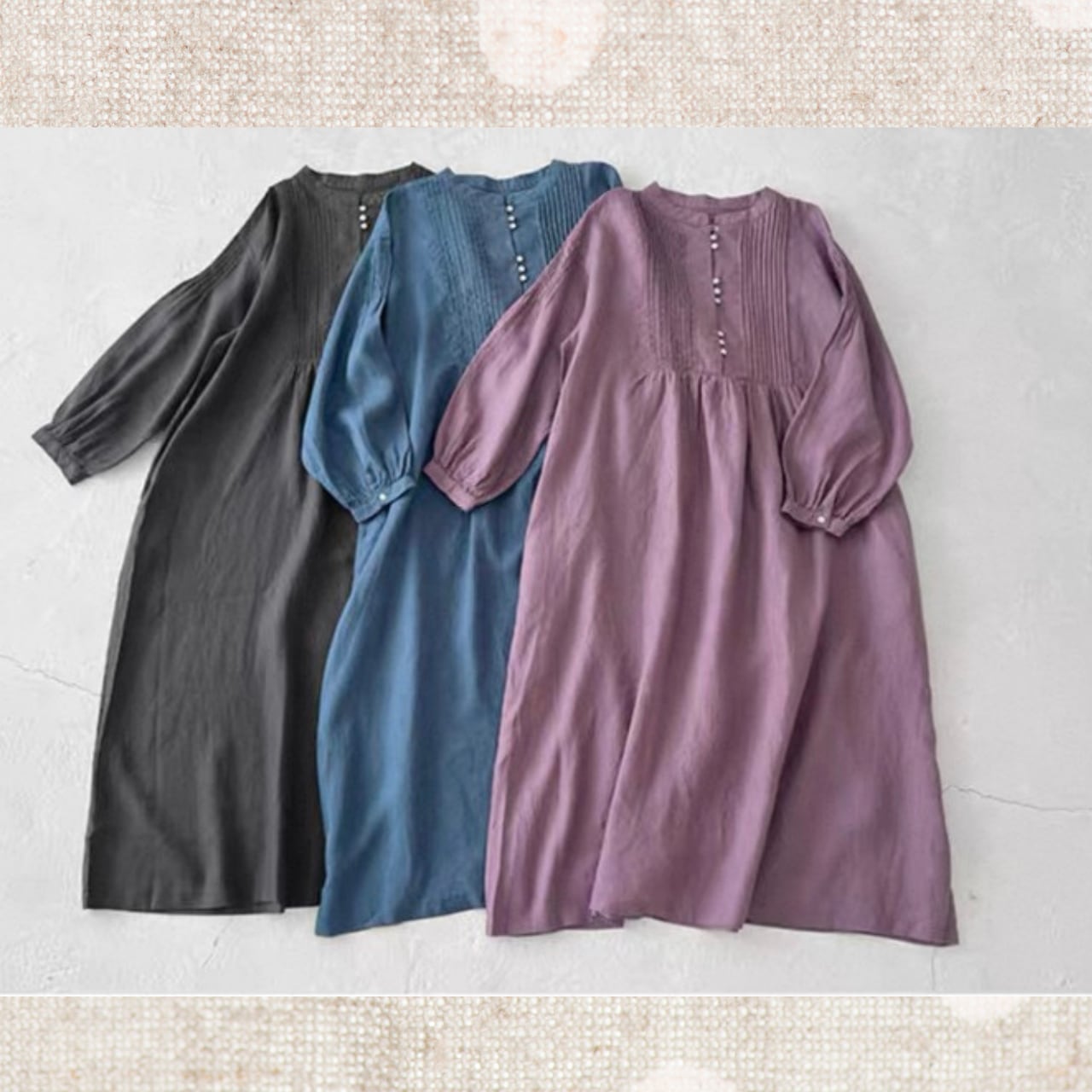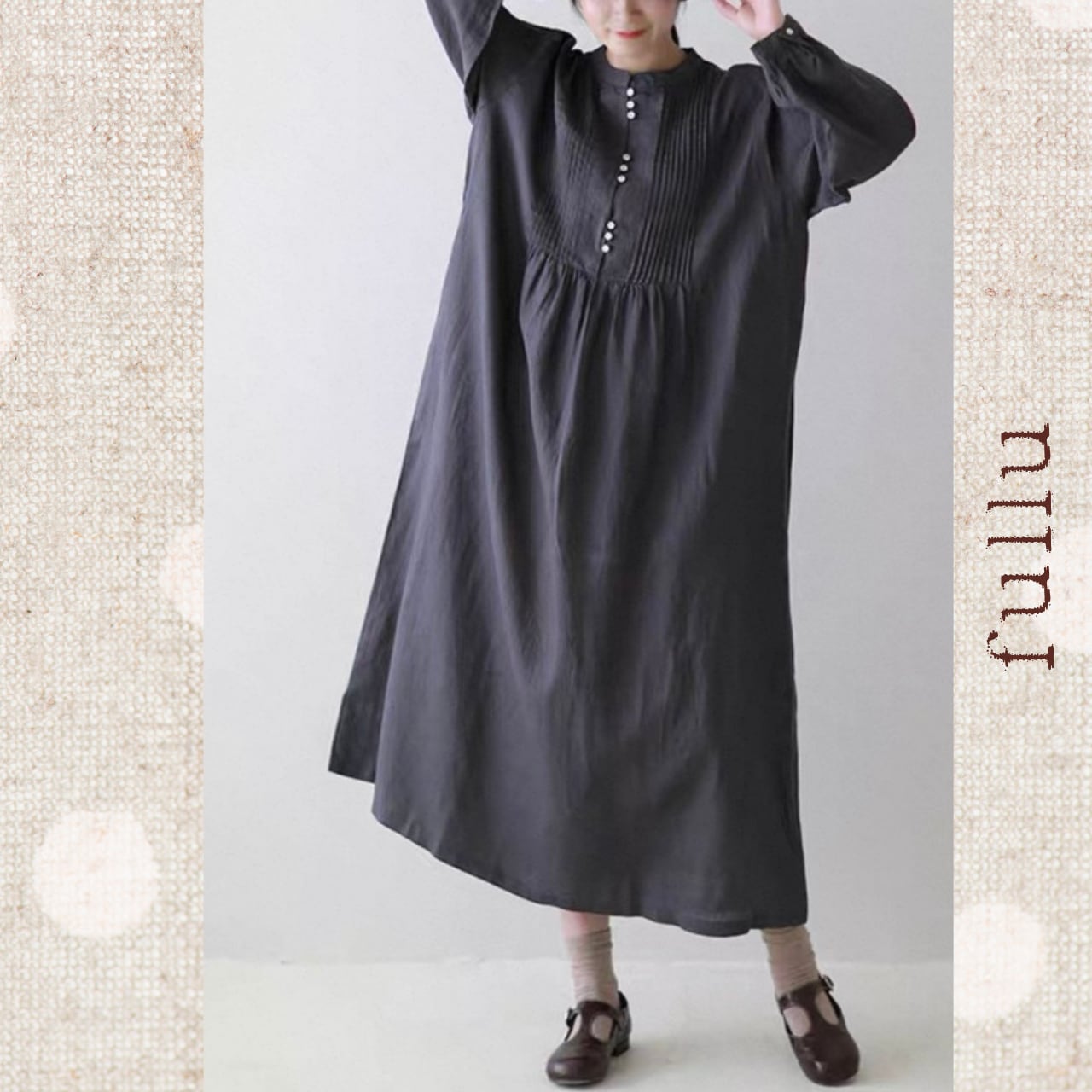 リネン ピンタック切替ロングワンピース 3color fu0950