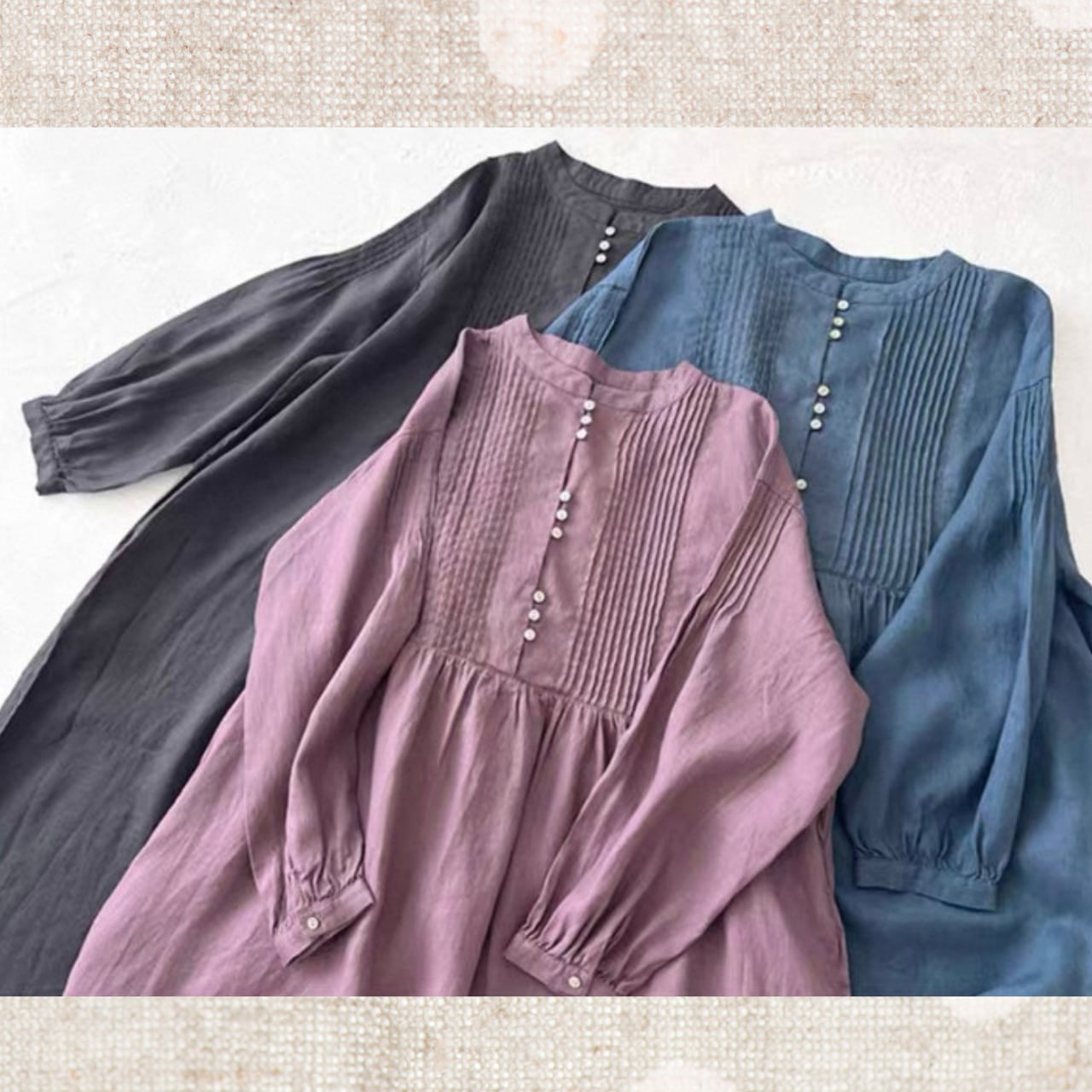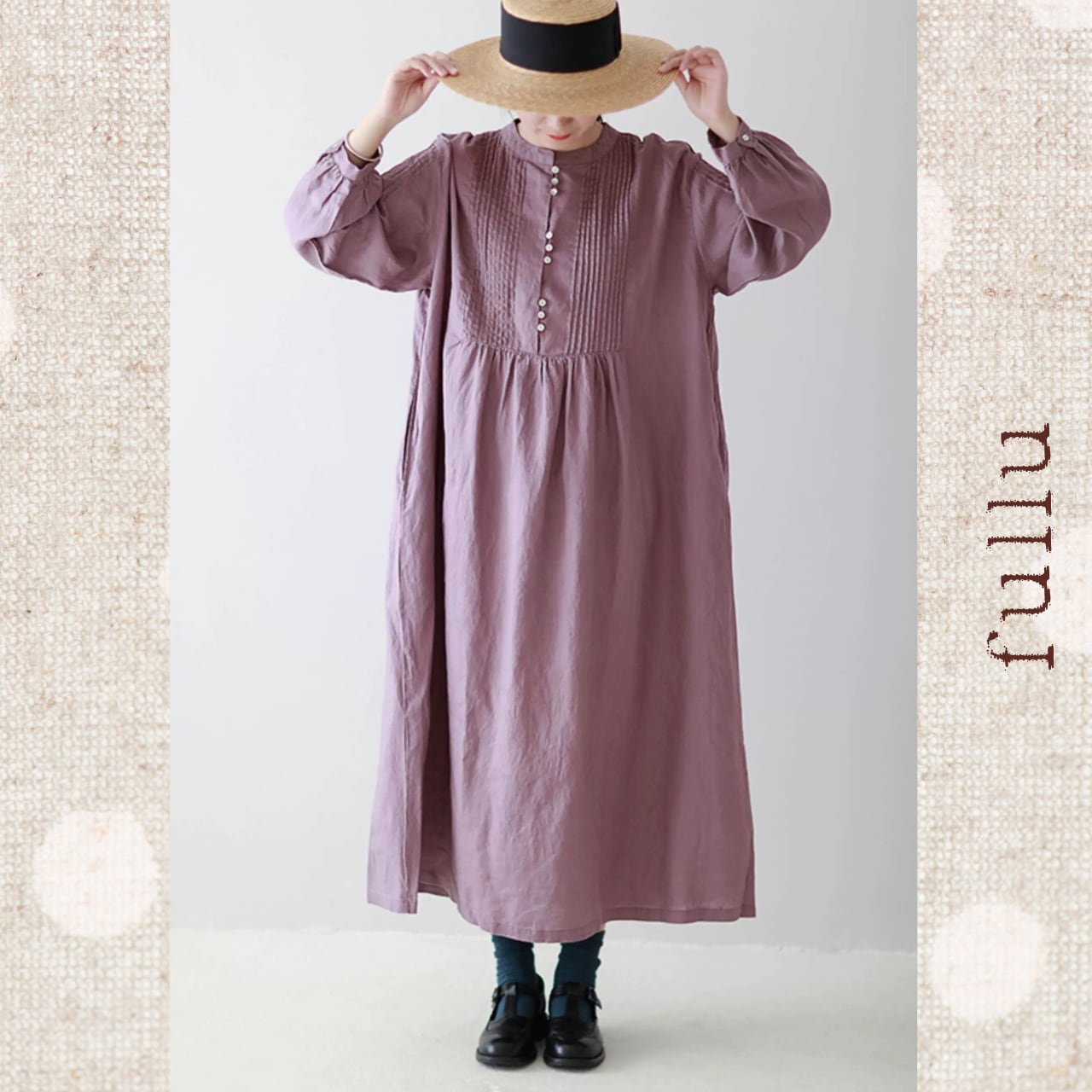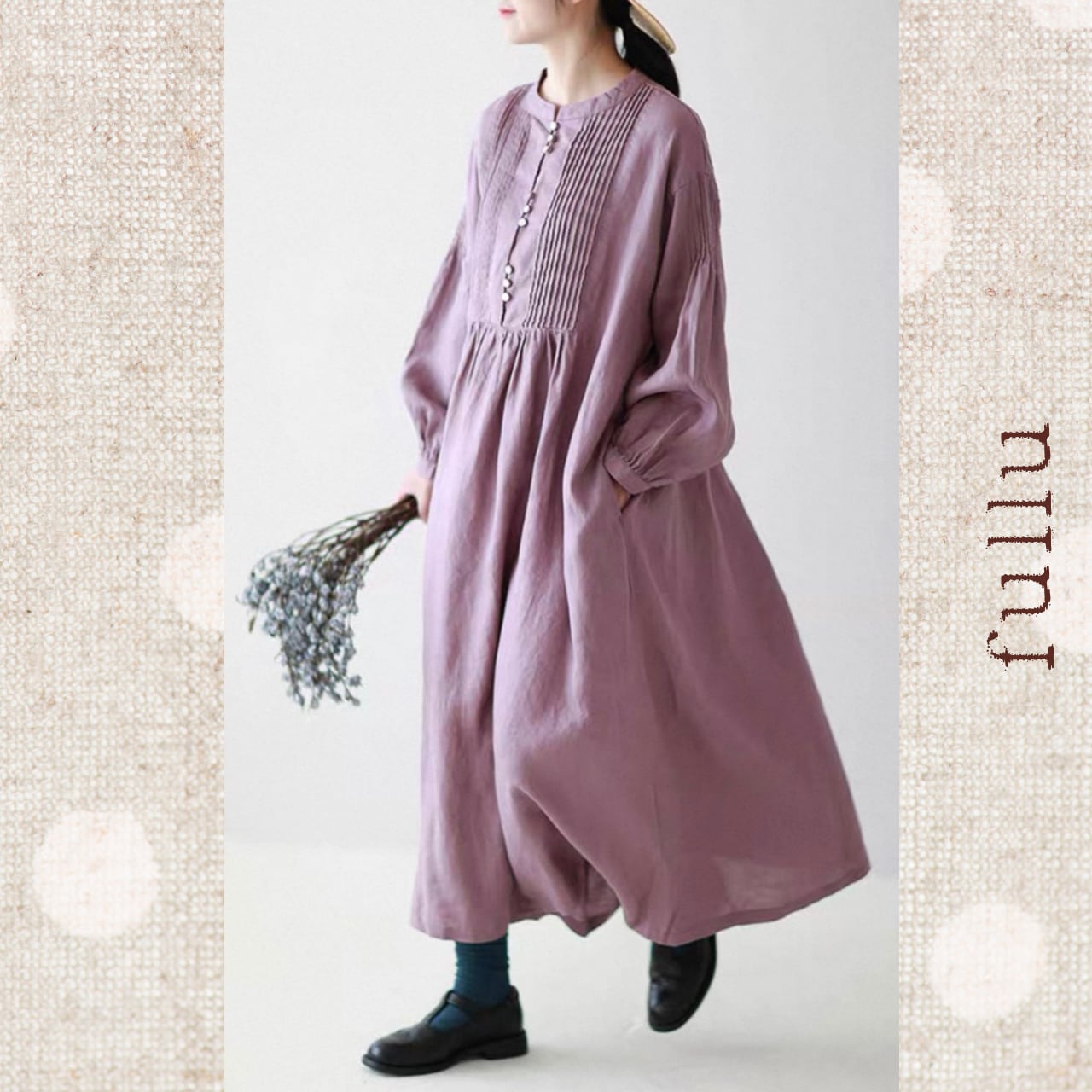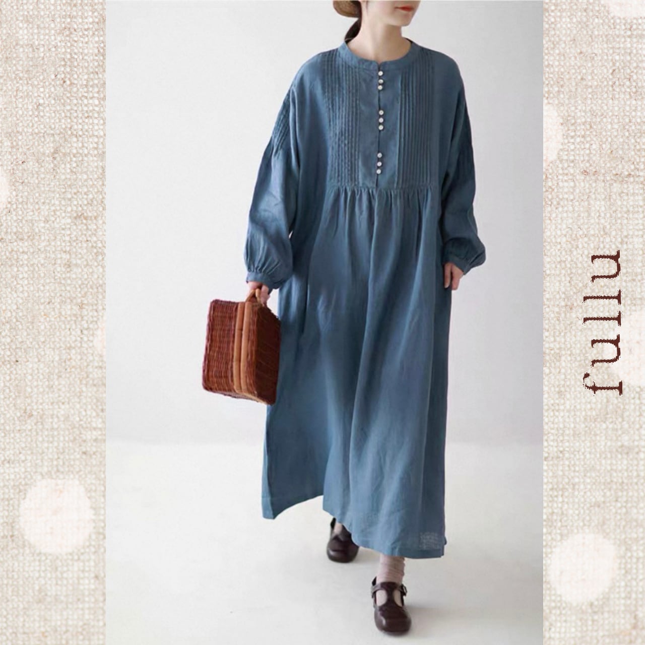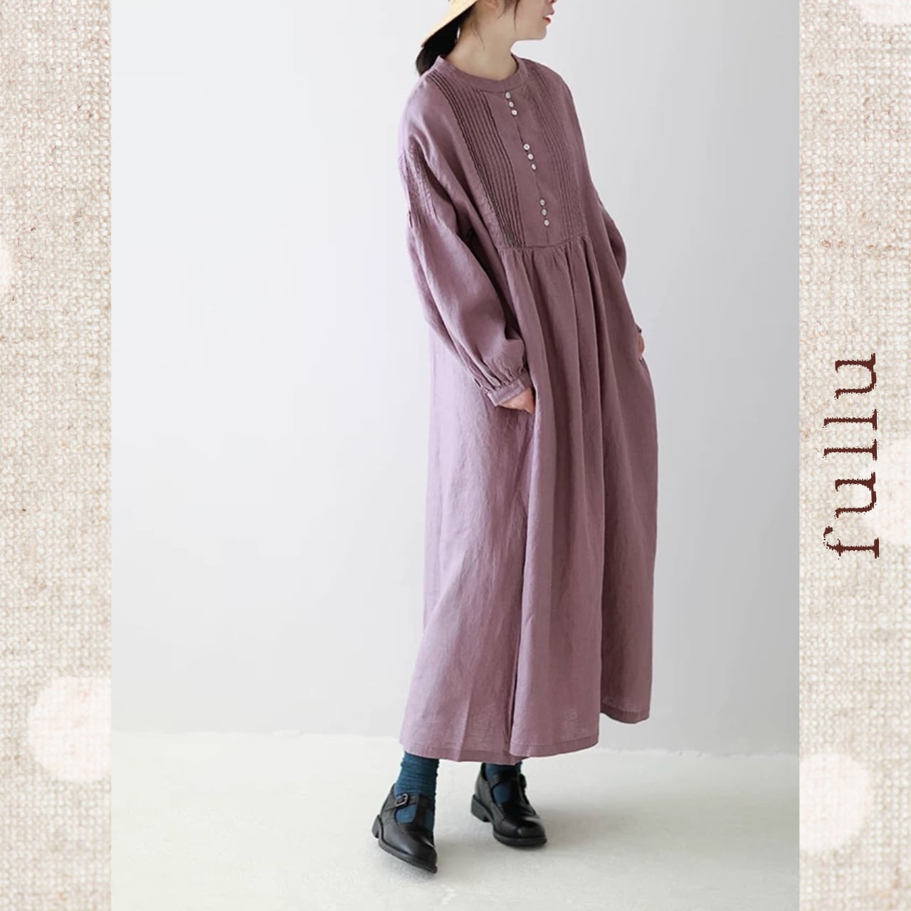 リネン ピンタック切替ロングワンピース 3color fu0950
