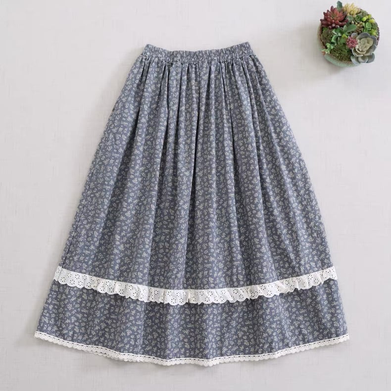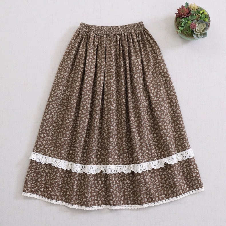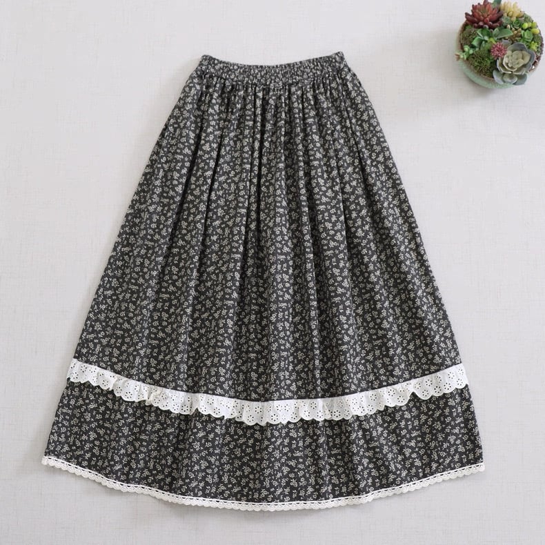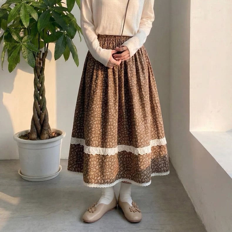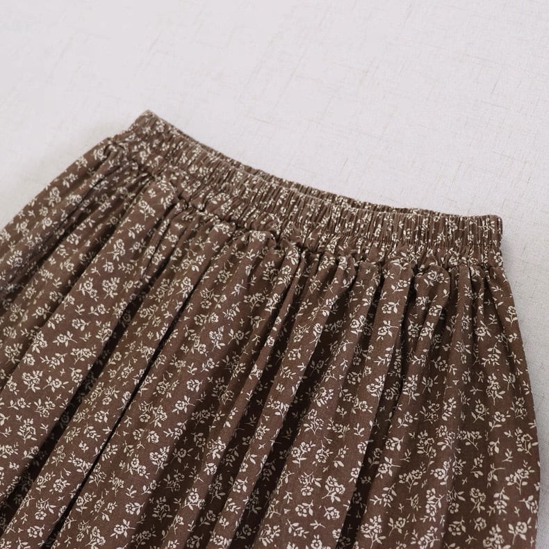 歩くたびに揺れる、細かな小花柄のロングスカート。