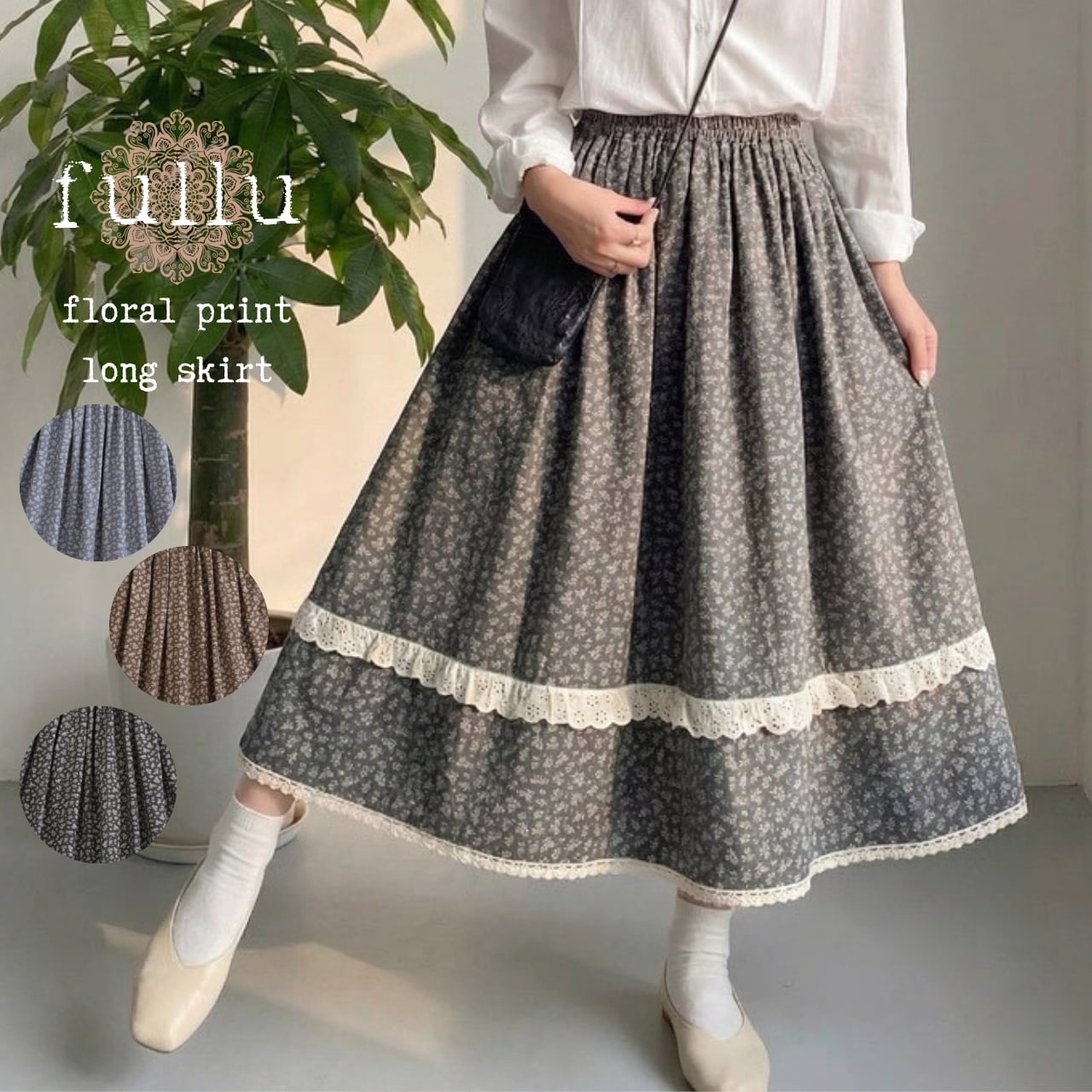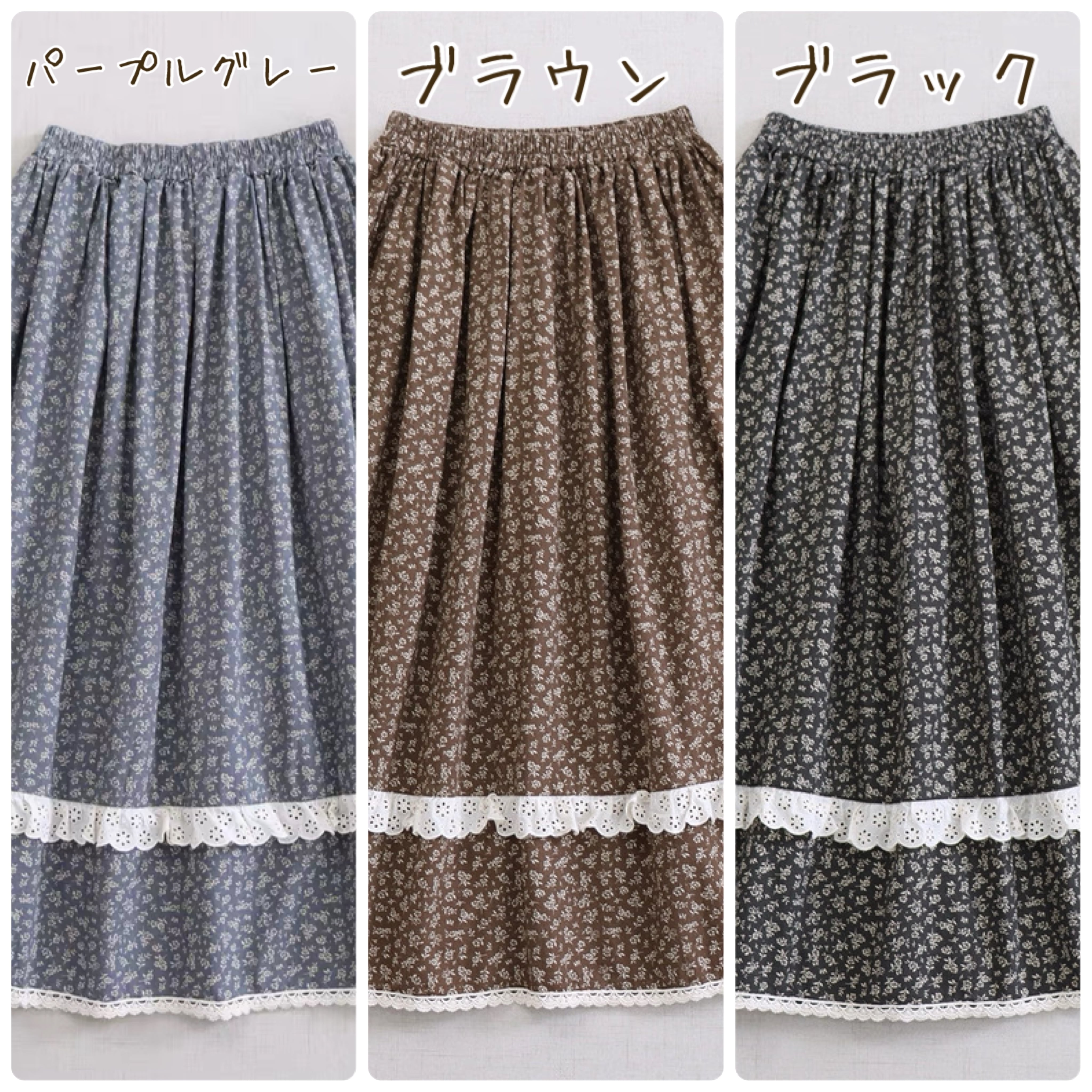 小花柄ティアードレース切替スカート 3color fu0955