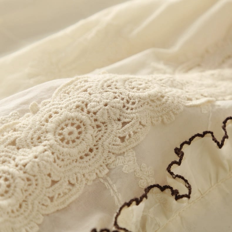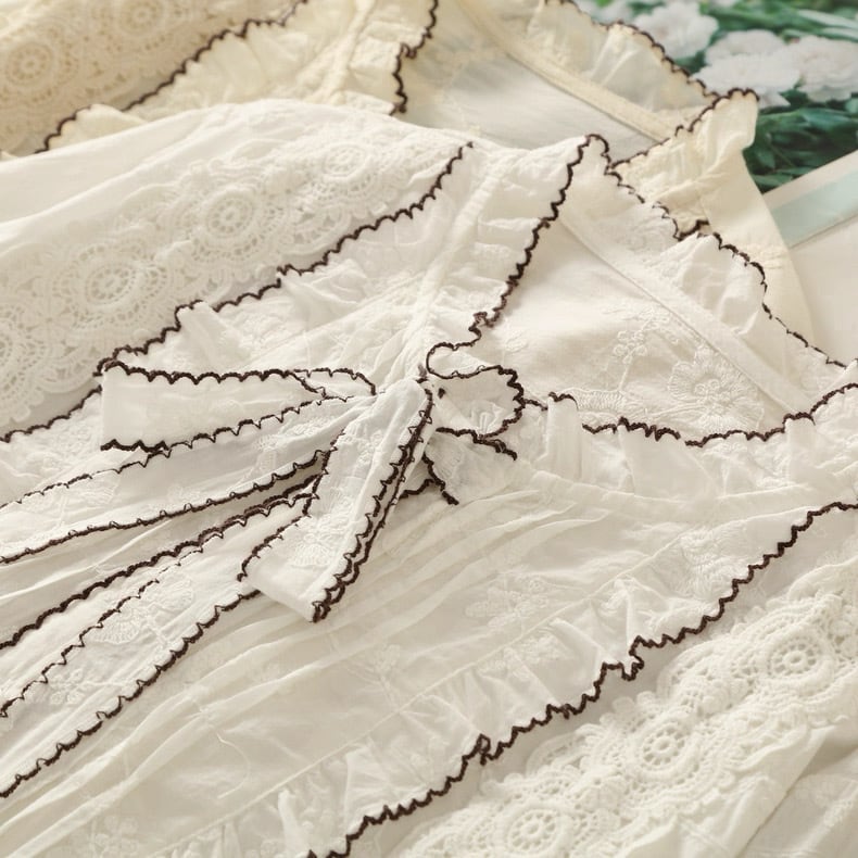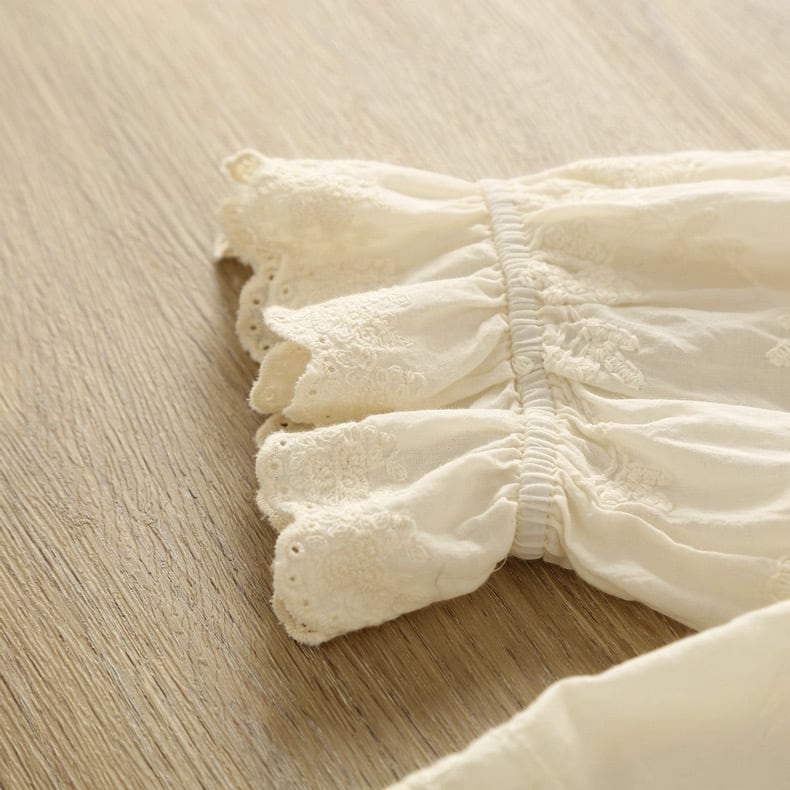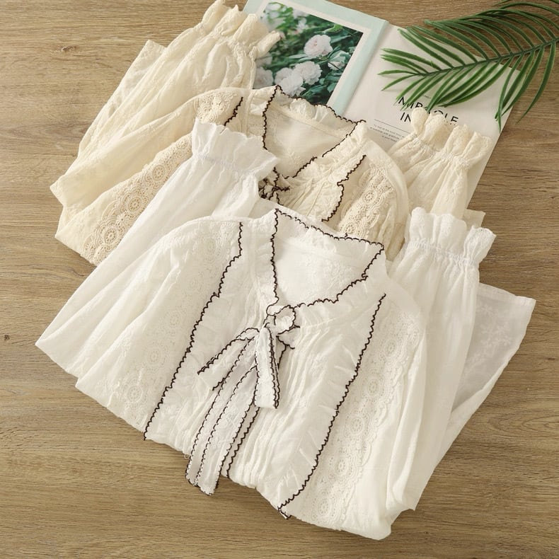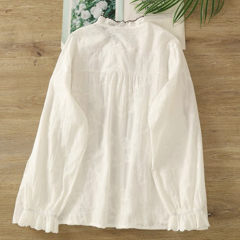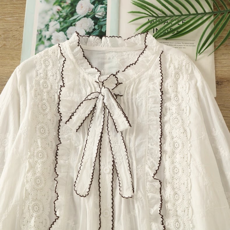 総刺繍生地に、配色ラインを効かせたブラウス。