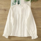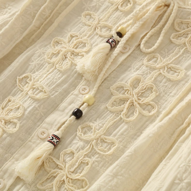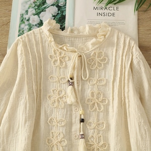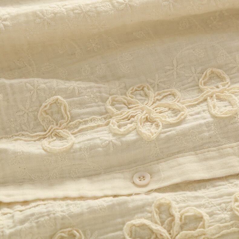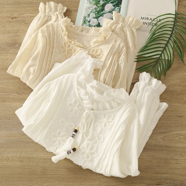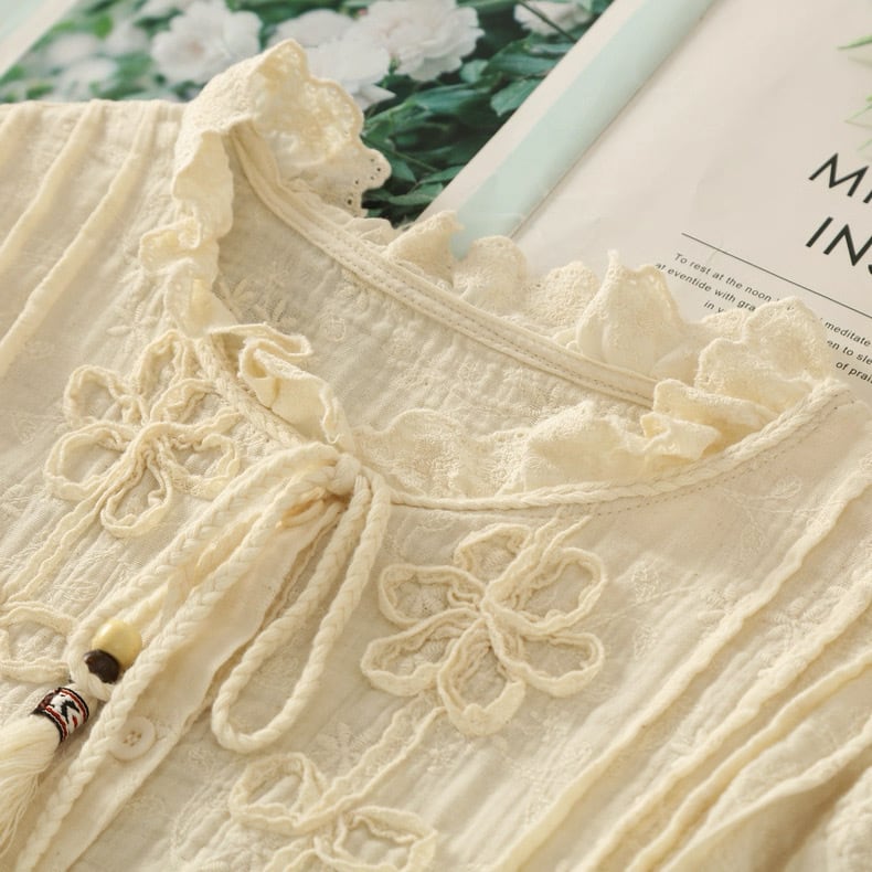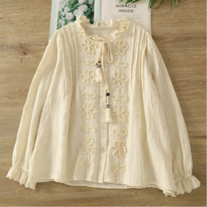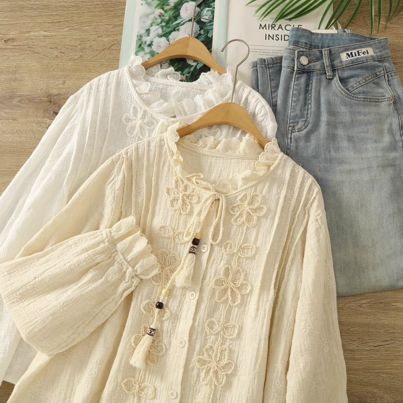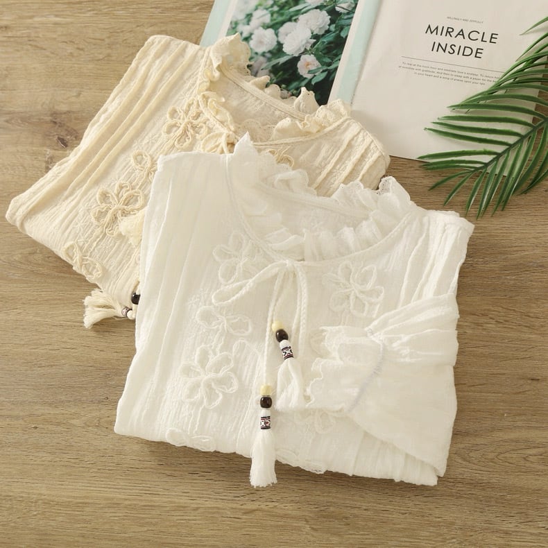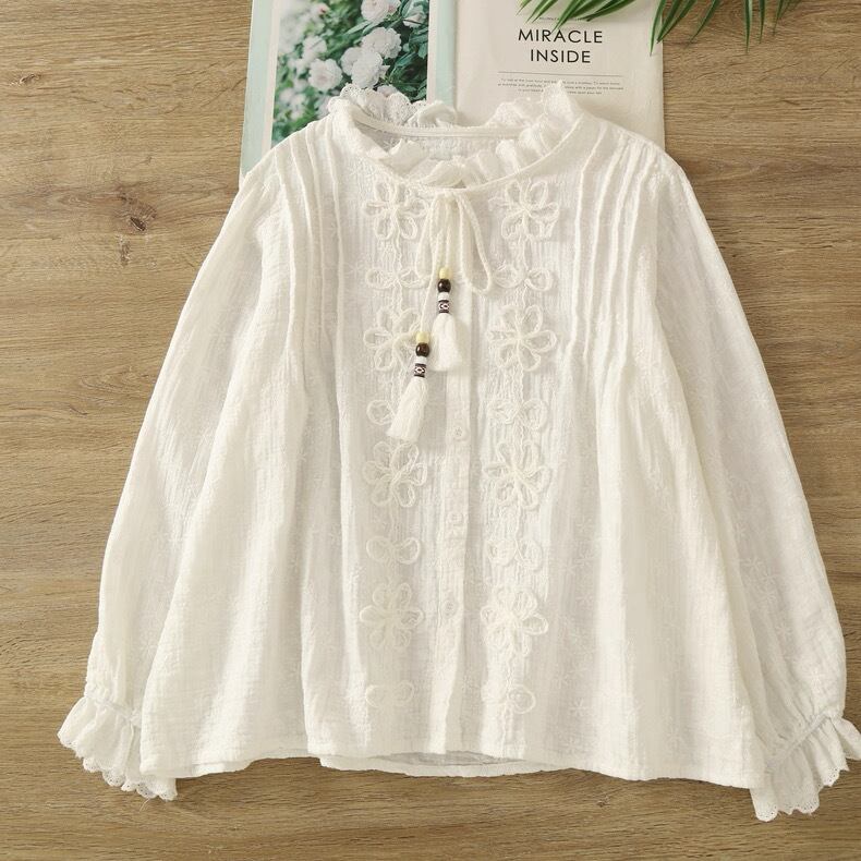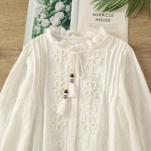 リネン混 総刺繍 立体フラワーリボンブラウス 2color fu0965