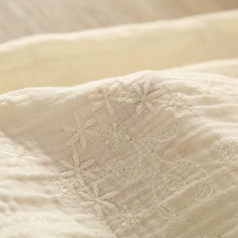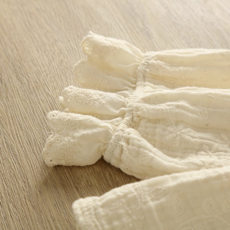 全体に施された総刺繍が印象的なブラウス。