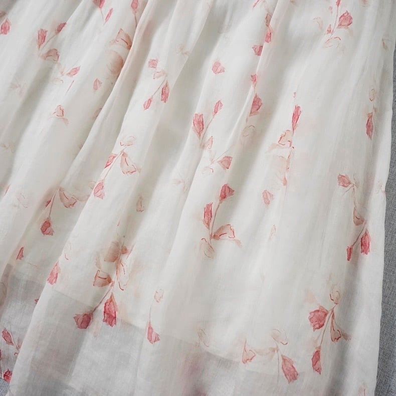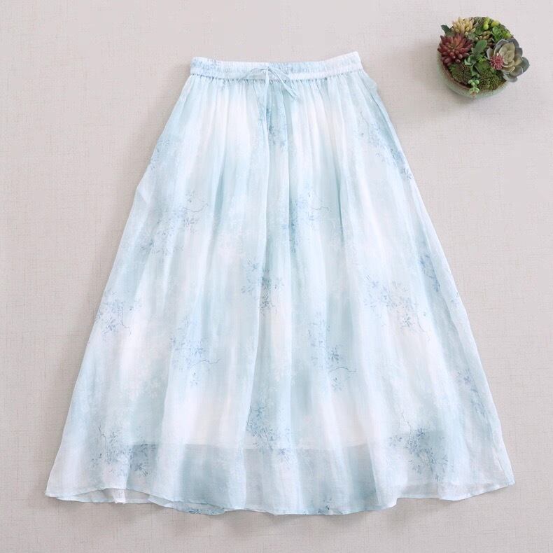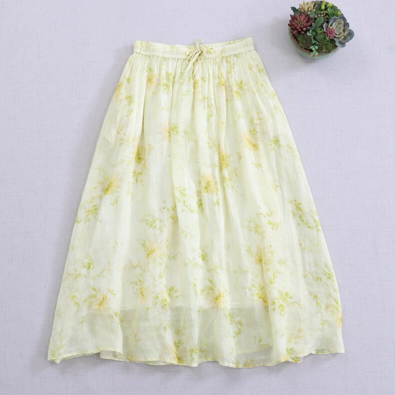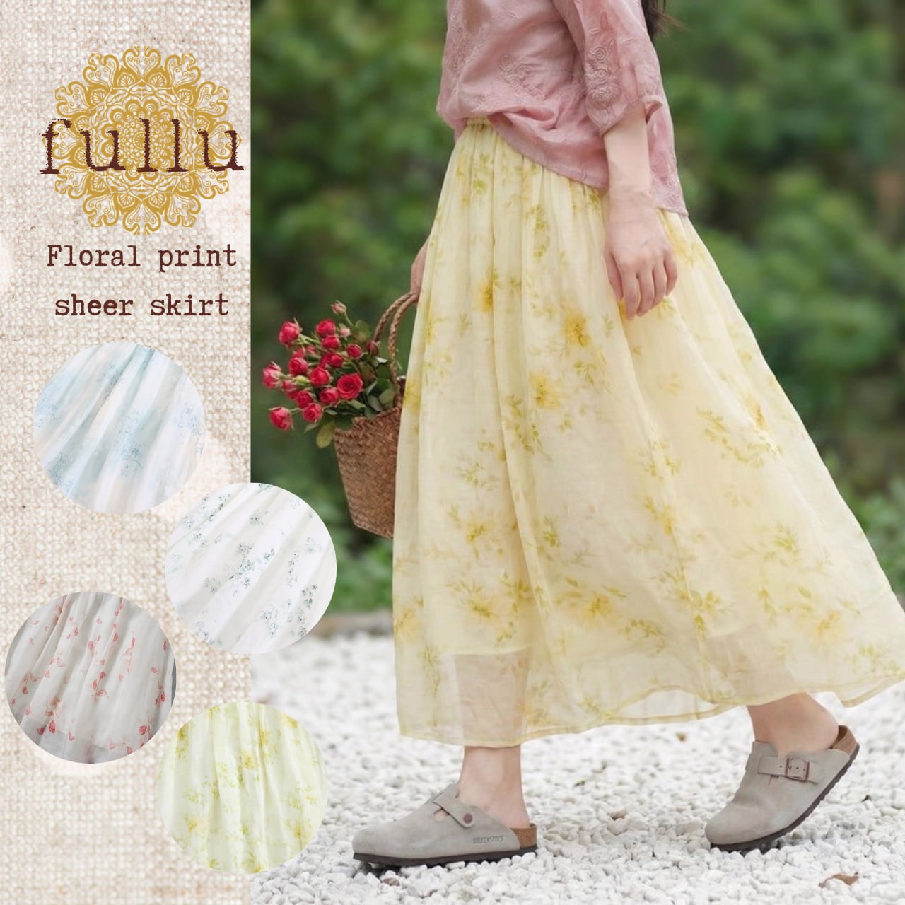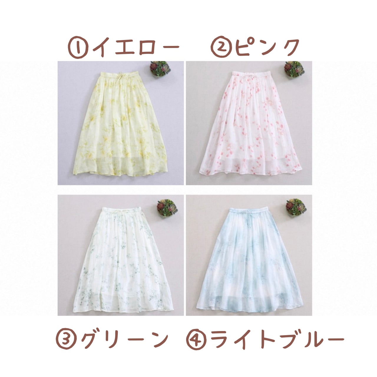 水彩花柄ラミーロングフレアスカート 4color fu0977