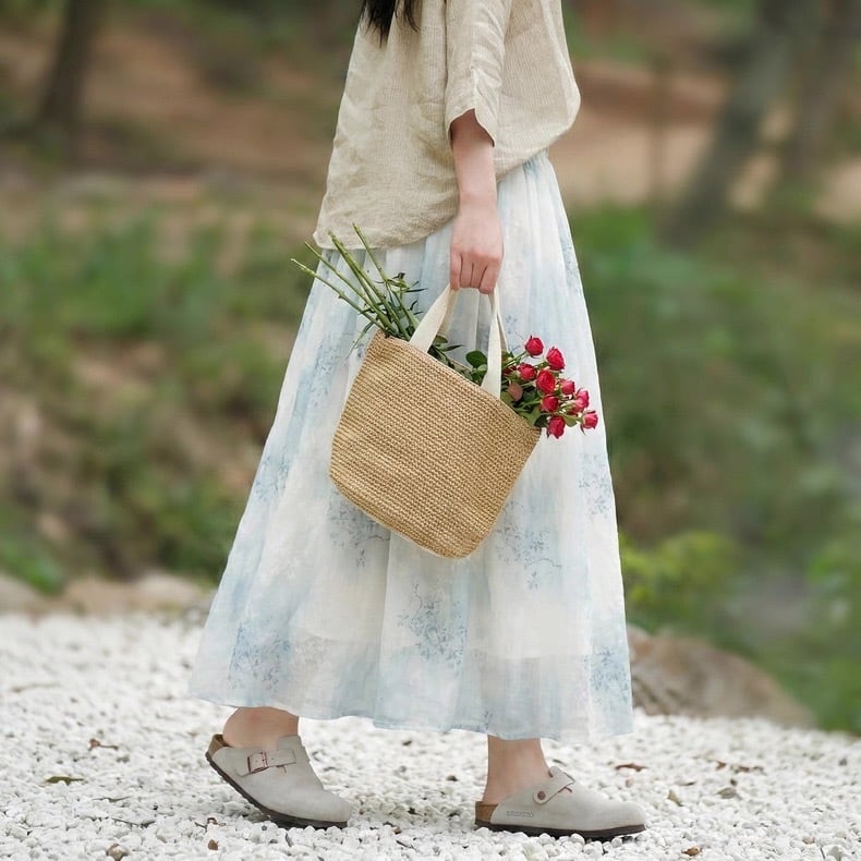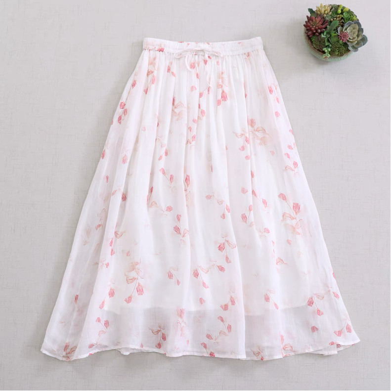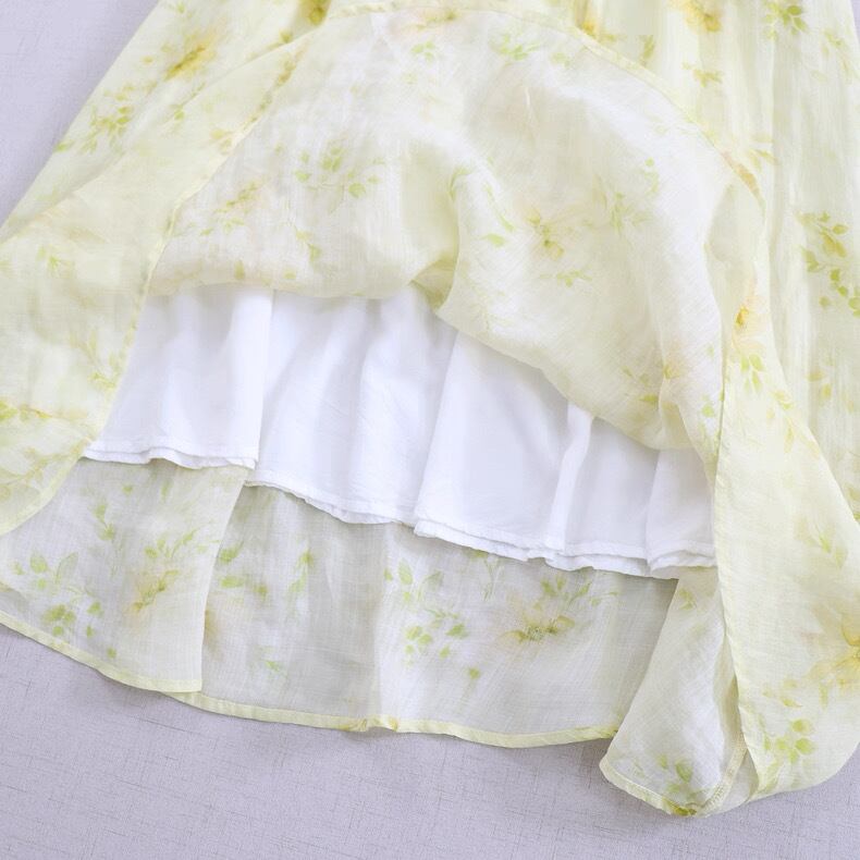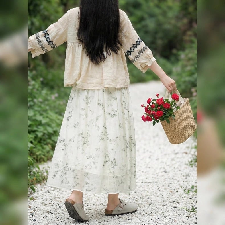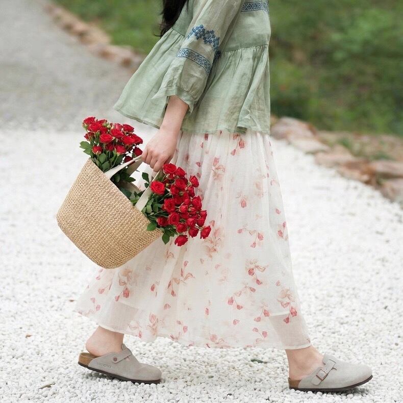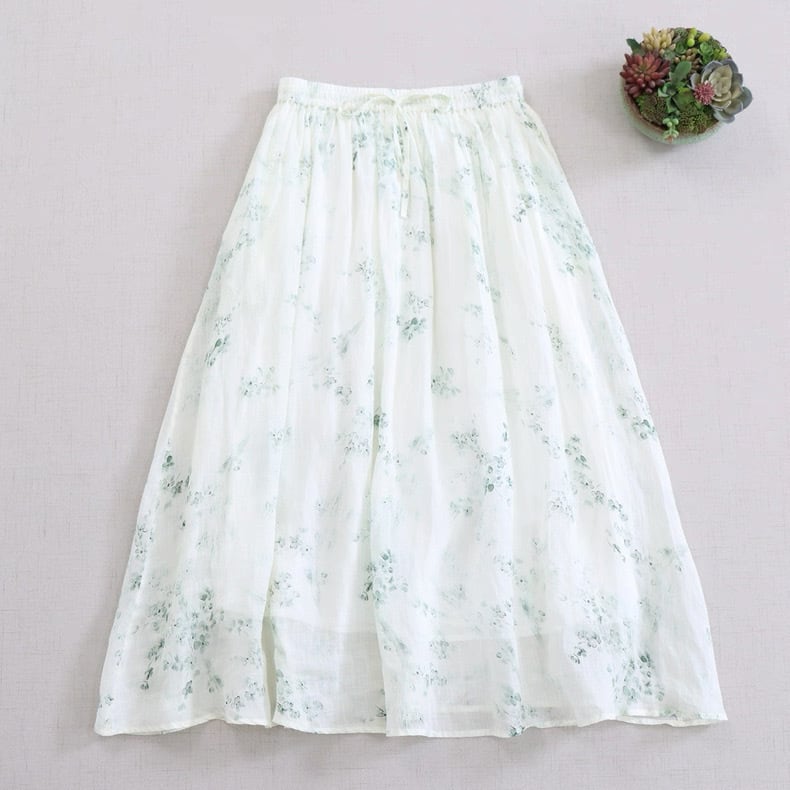 水彩花柄ラミーロングフレアスカート 4color fu0977