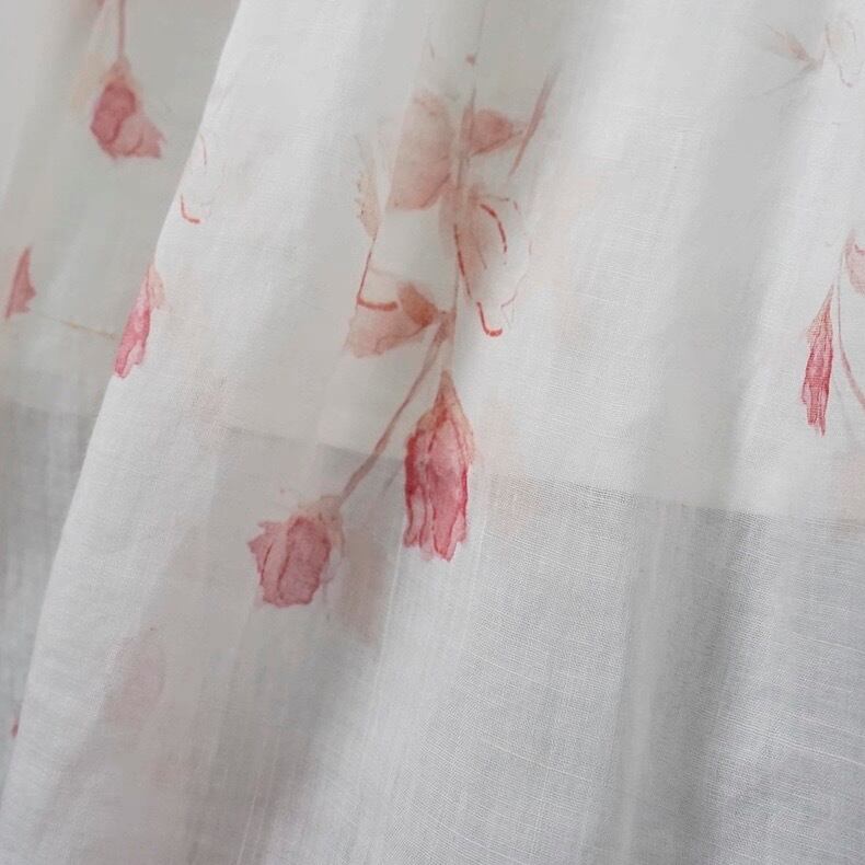 淡い水彩画のような花柄を全体にあしらい甘すぎない大人のカントリースタイルに仕上がっています。