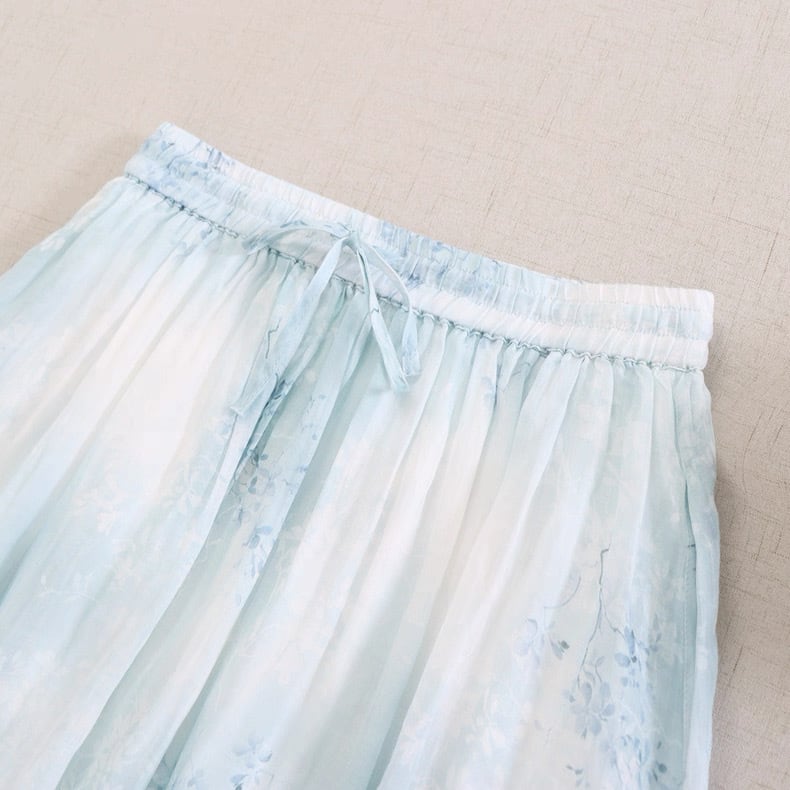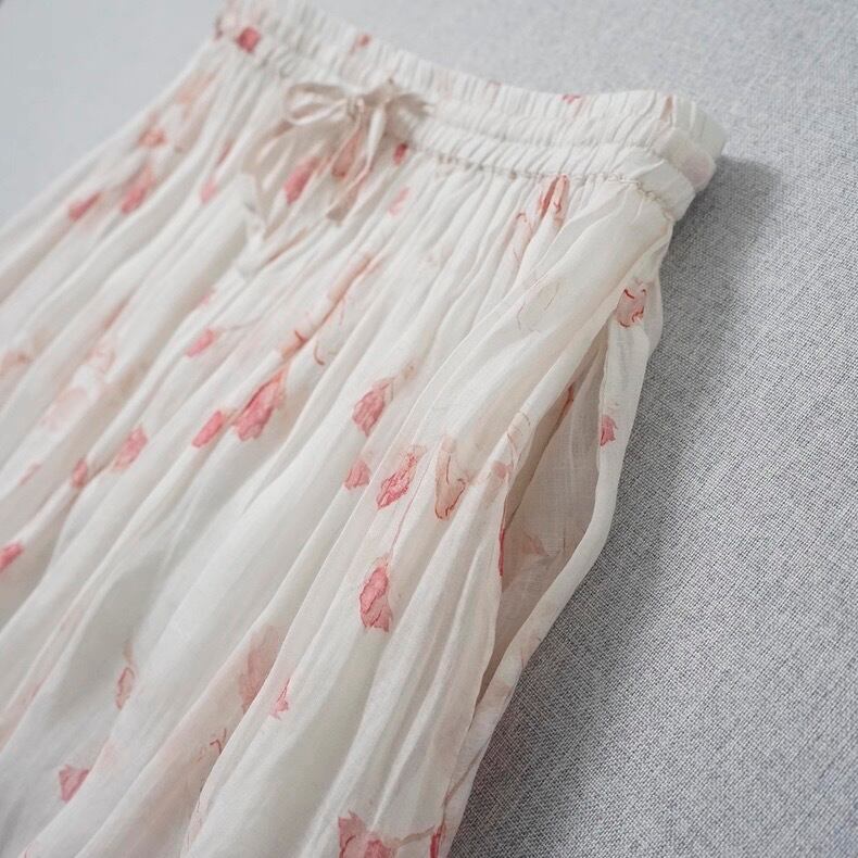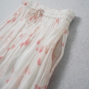 風をはらんでふんわりと揺れる、シアーな透明感が美しいロングスカートです。