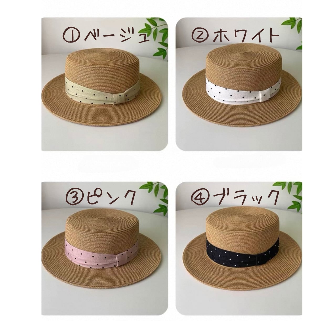 ドットリボン カンカン帽 4color fu0979