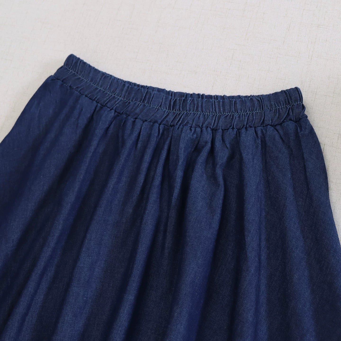 • 柔らかな着心地: 硬すぎないデニム素材を使用。歩くたびにふんわり広がるAラインシルエットが女性らしさを引き立てます。