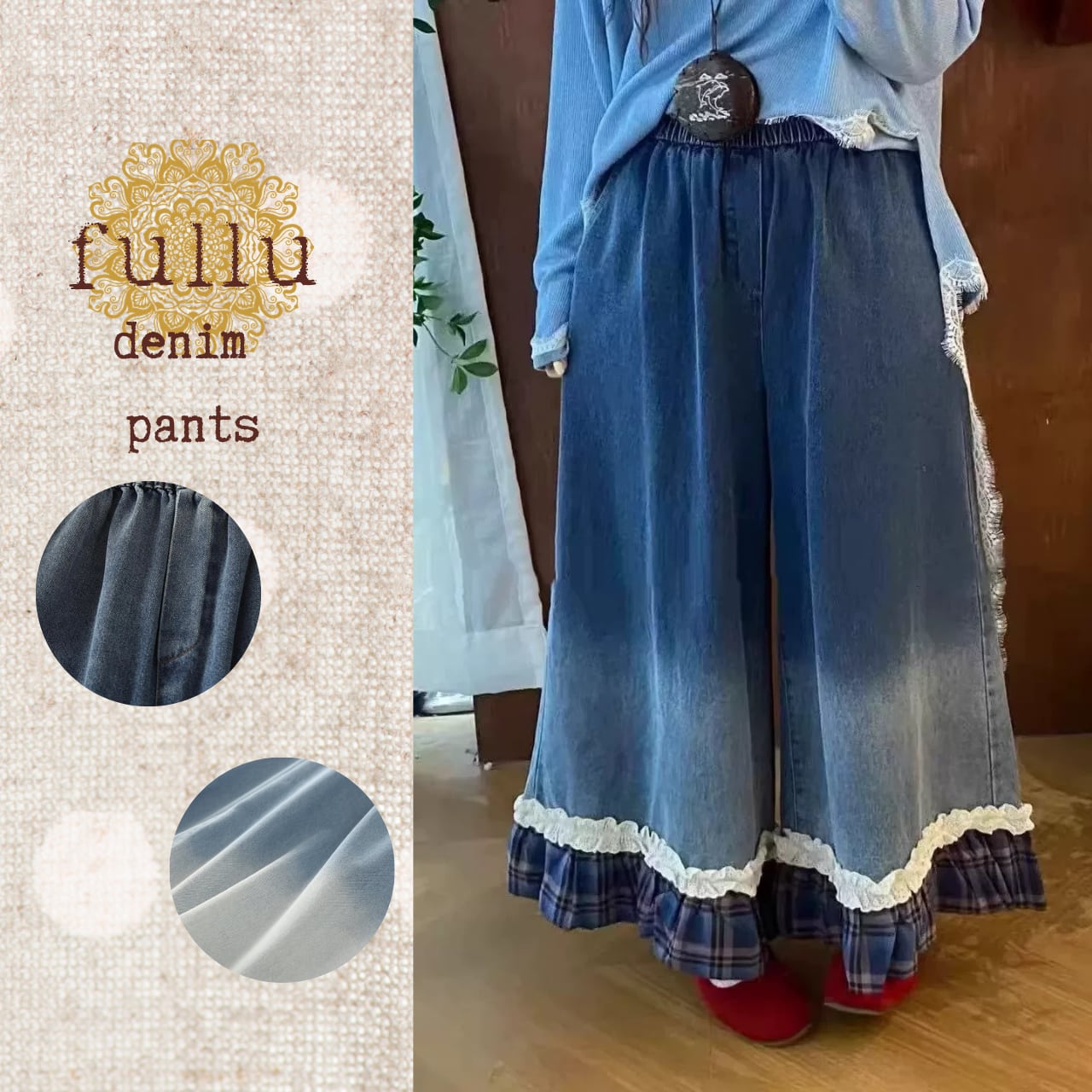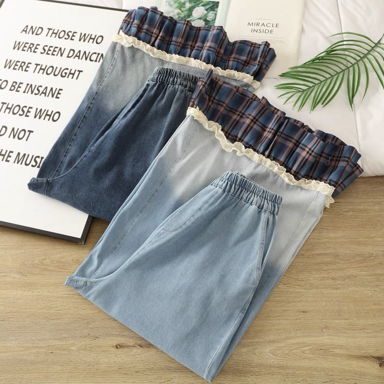 裾チェック切替 グラデーションデニムスカート 2color fu0988