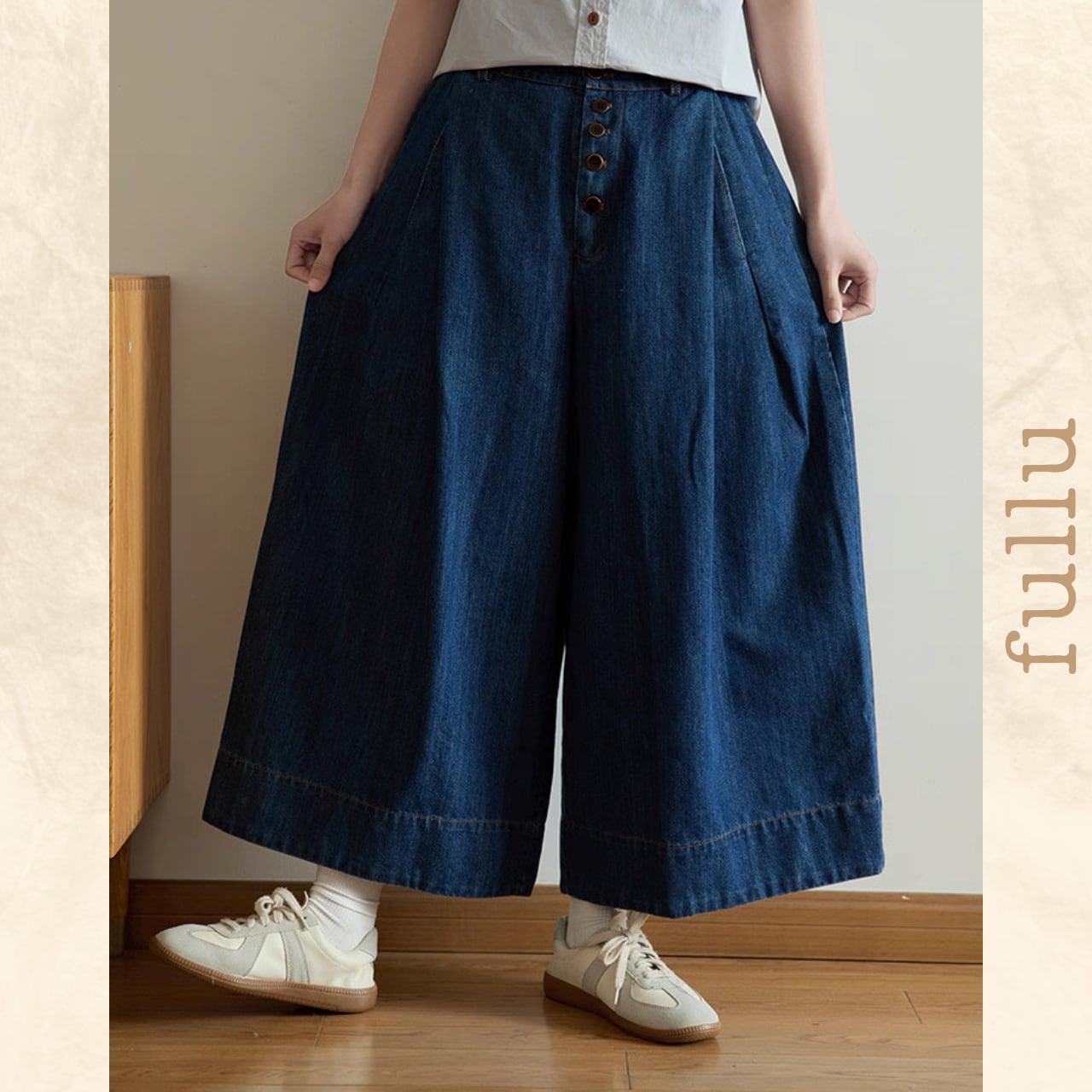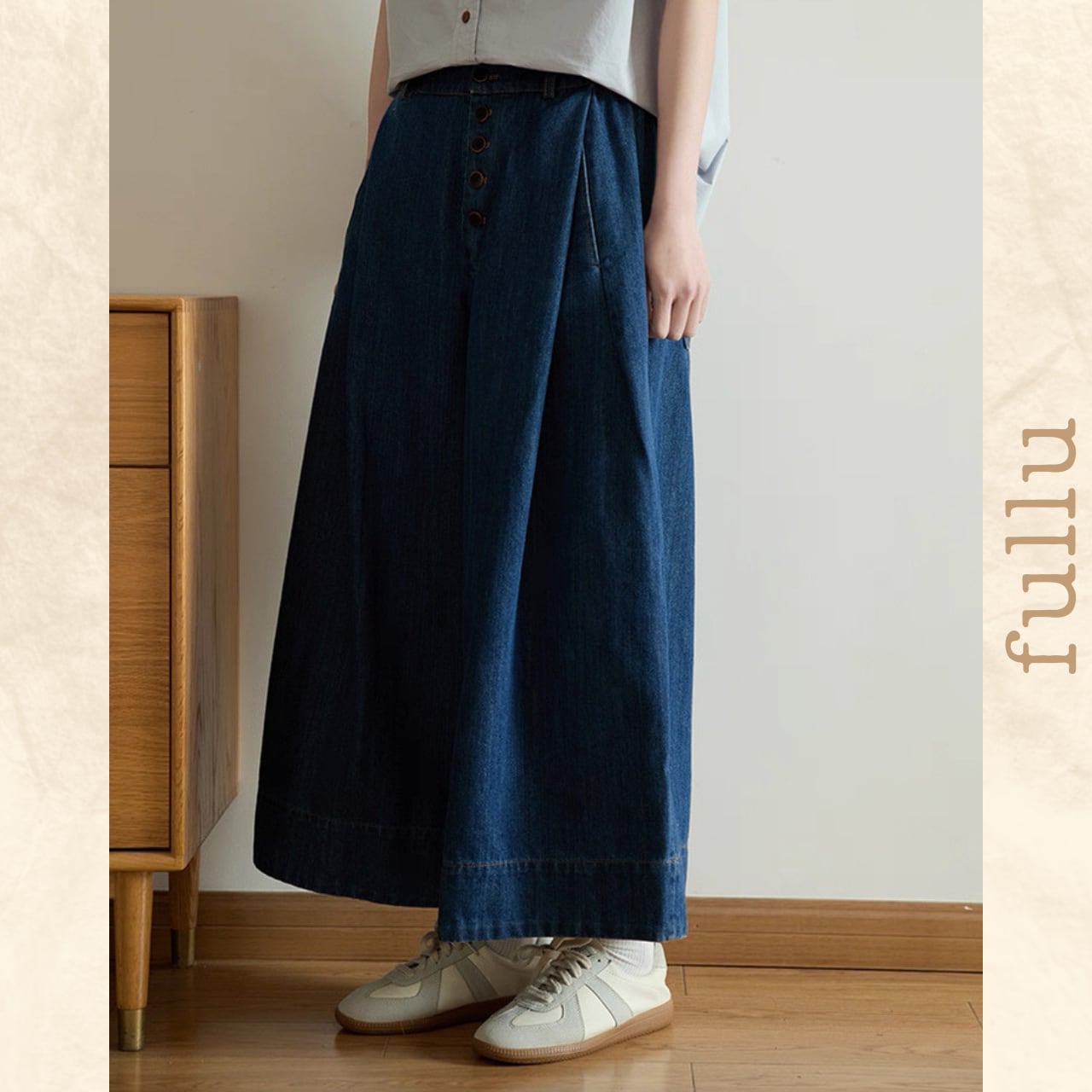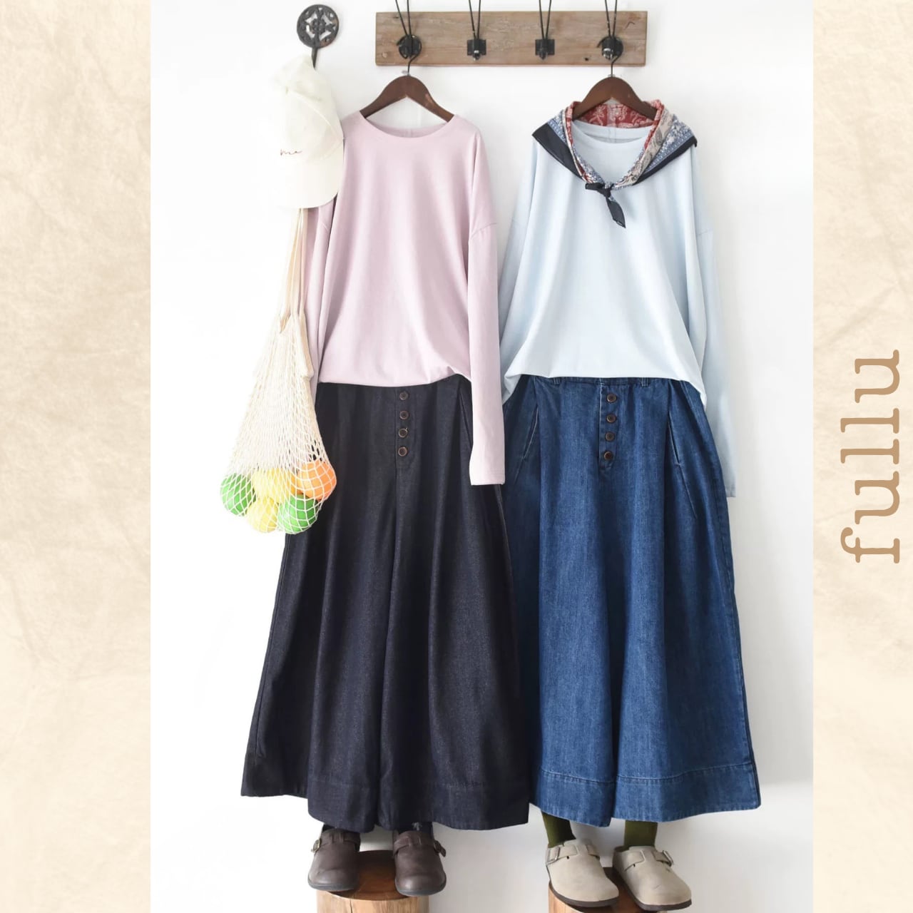 フロントボタンふんわりワイドデニムパンツ 3color fu0998