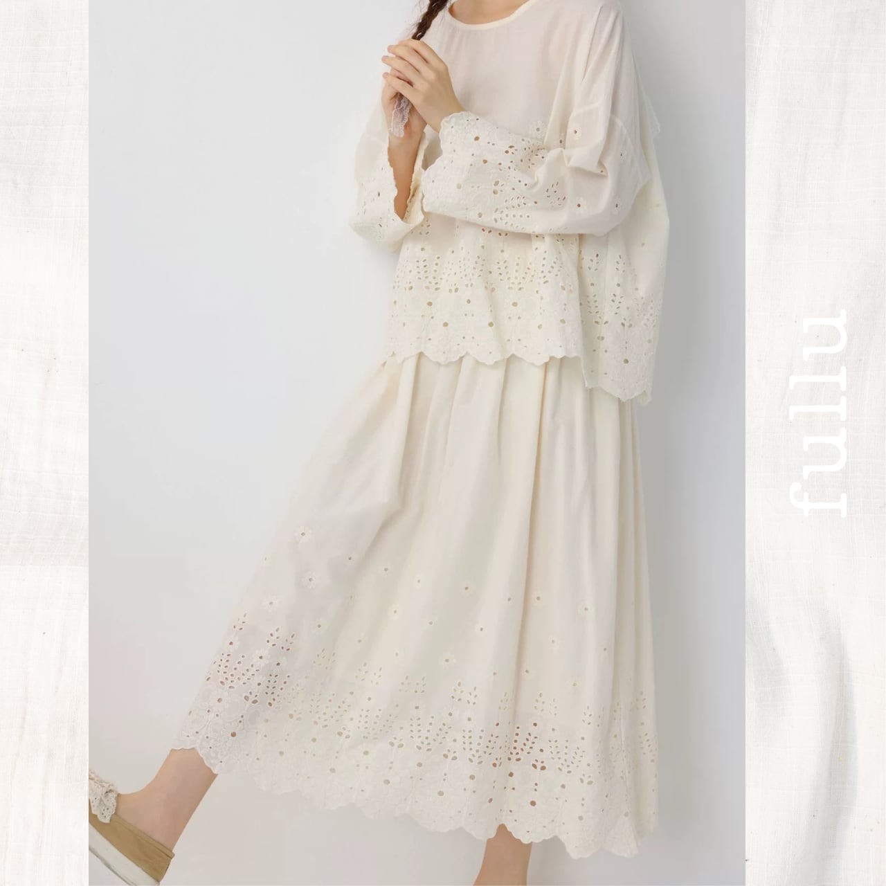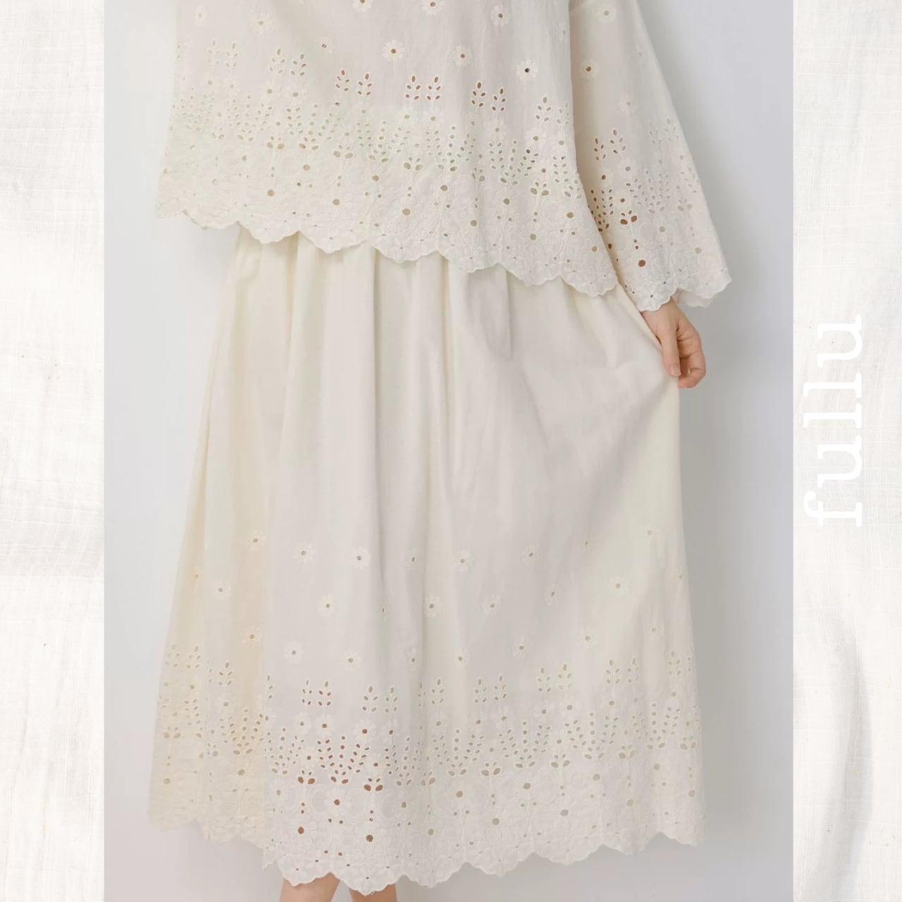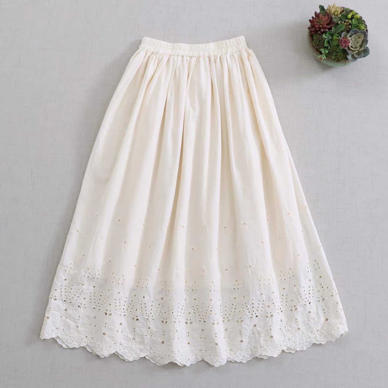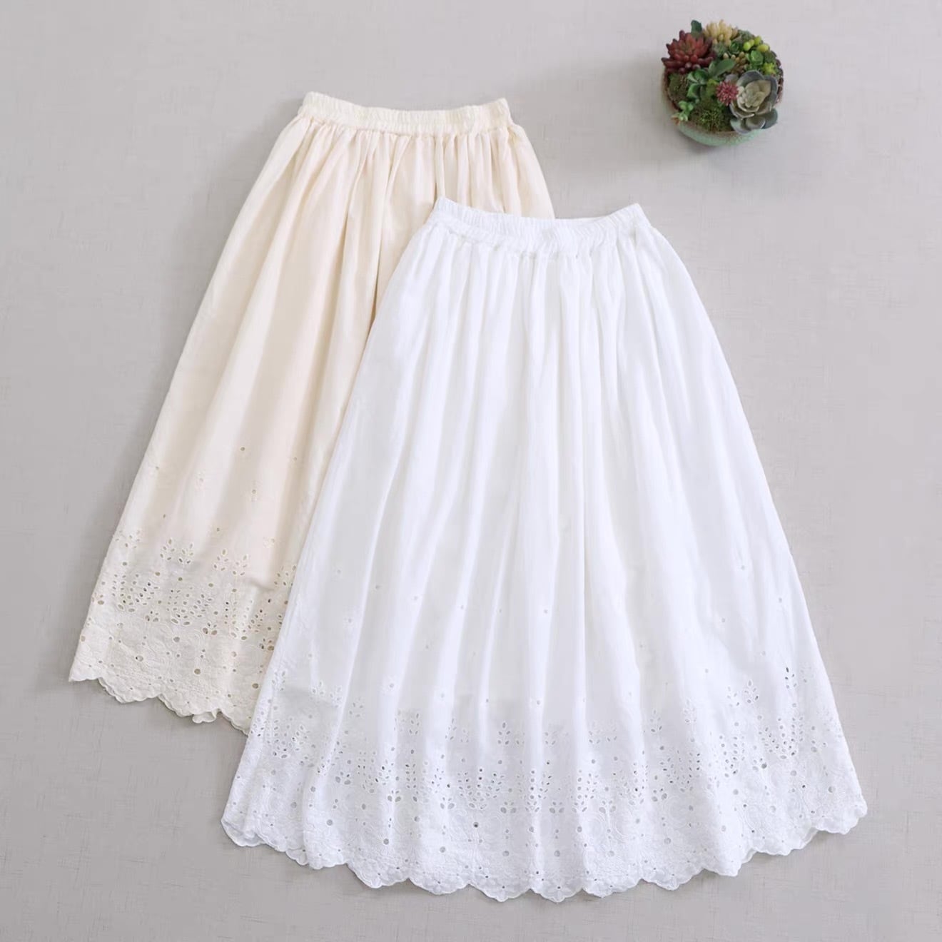カットワーク刺繍 コットンペチスカート(裾スカラップ) 2color fu1001