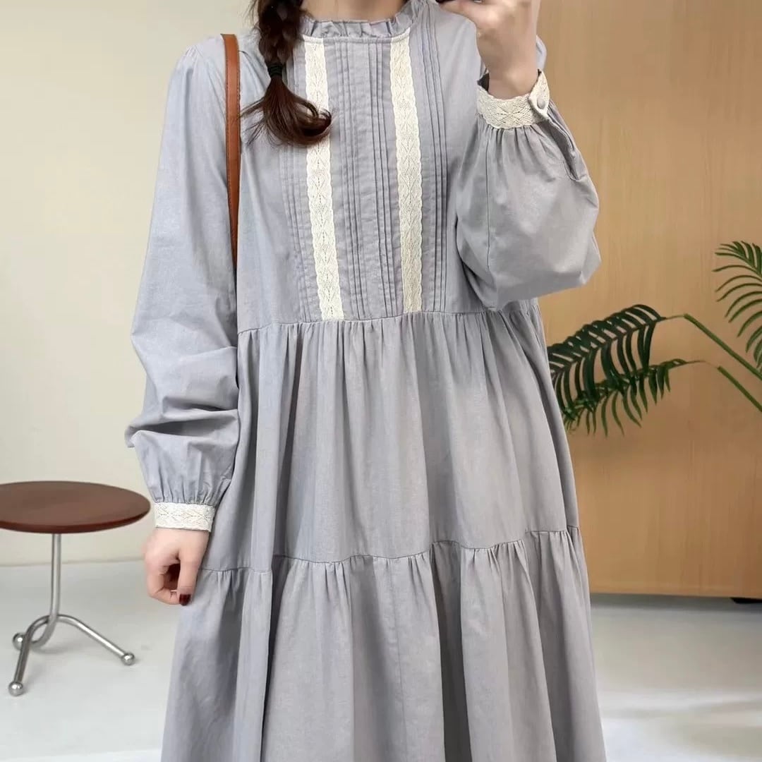 ピンタック×レース切替 ハイネックティアードワンピース 2color fu1002