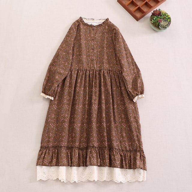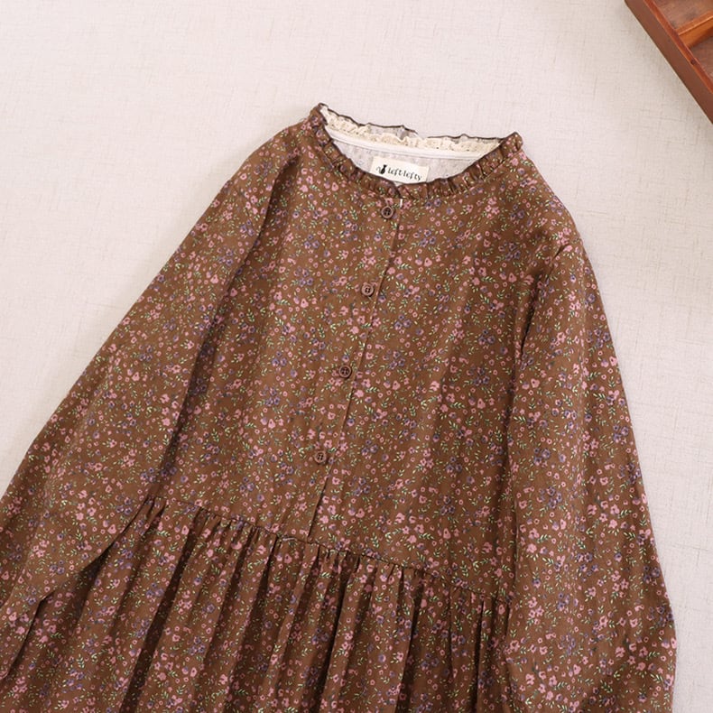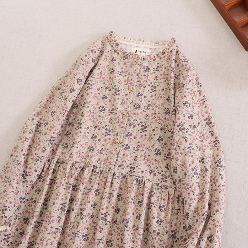 小さな花柄を散りばめた、落ち着いた雰囲気のワンピース。