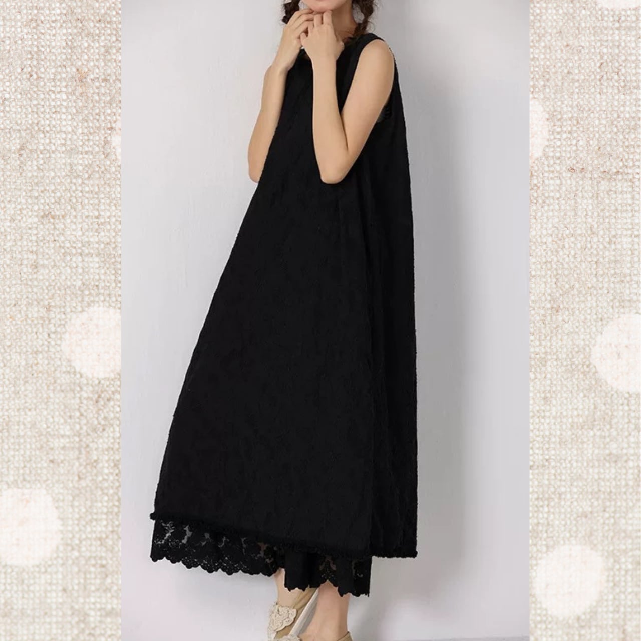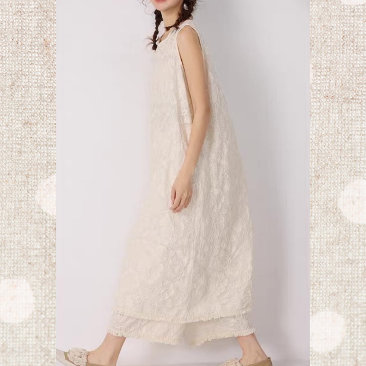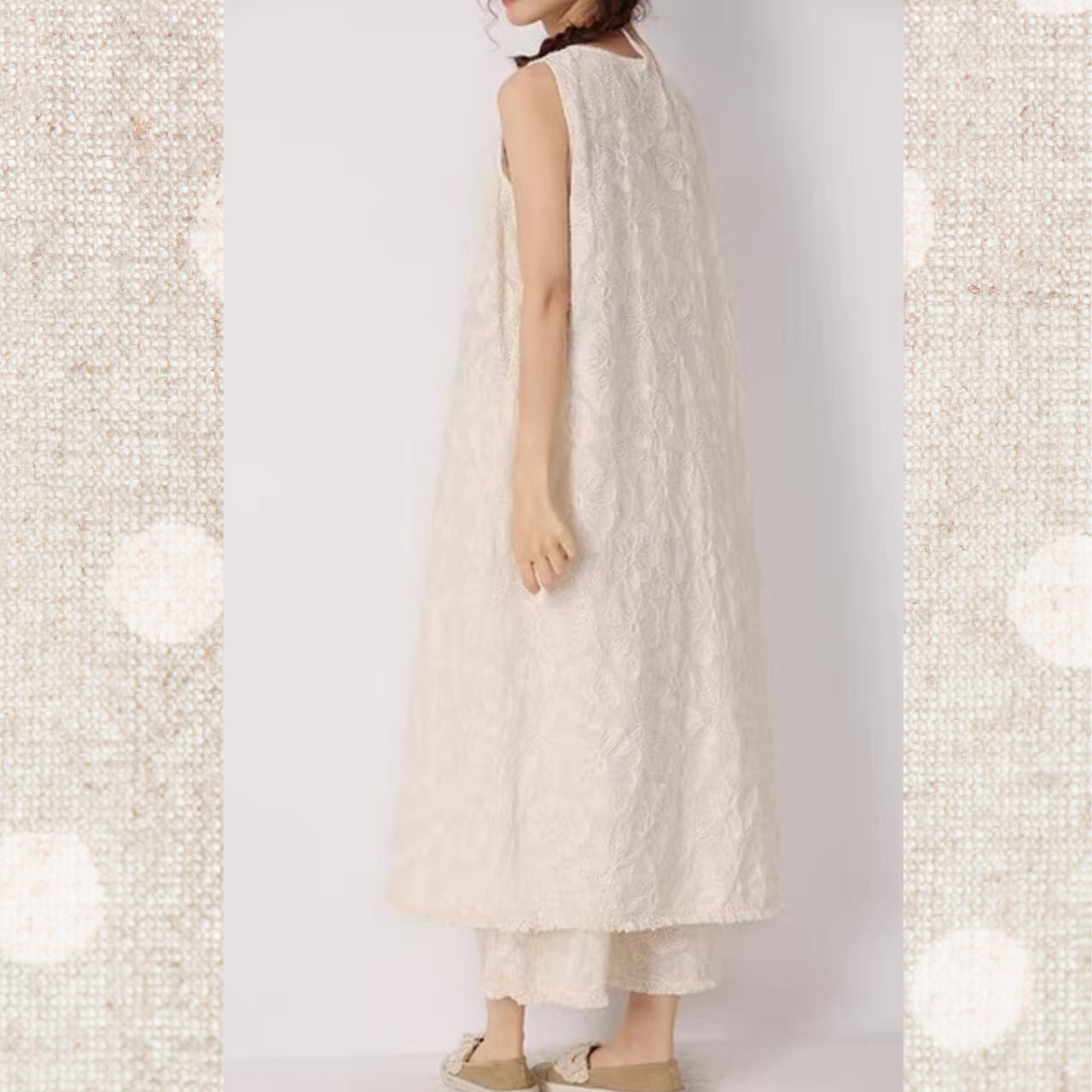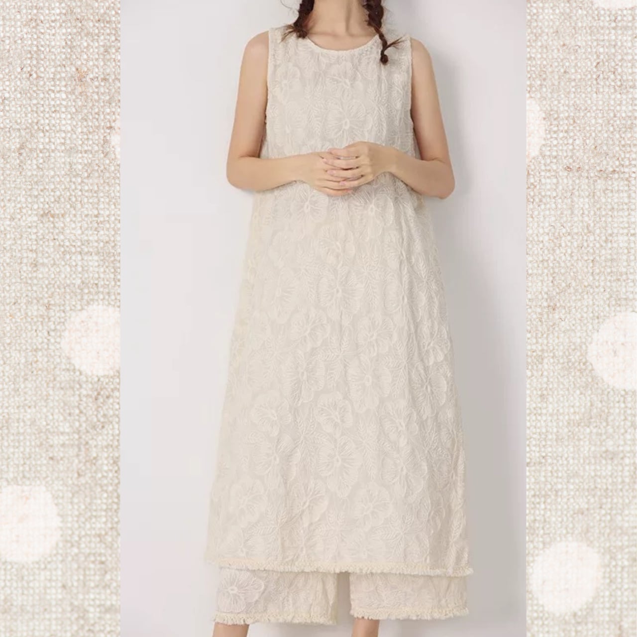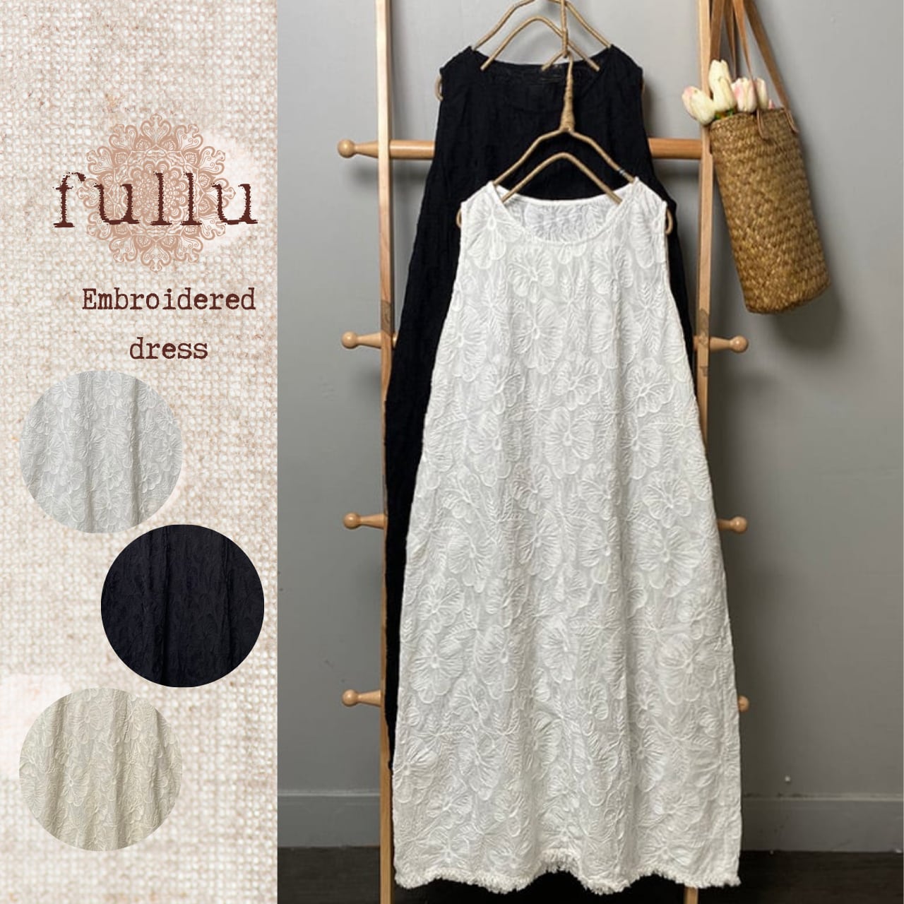 エンブロイダリーノースリーブワンピース 3color fu0053