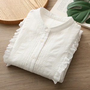 スタンドカラー前面フリルクラシカルブラウス fu0079
