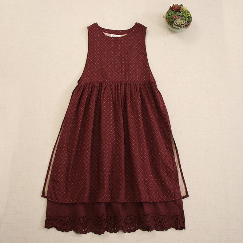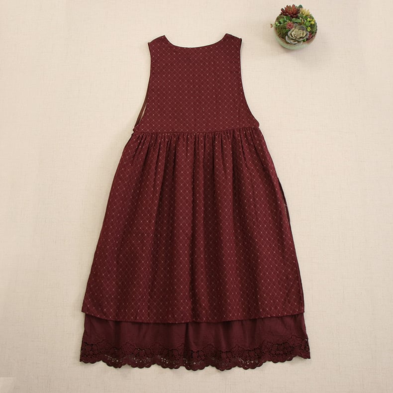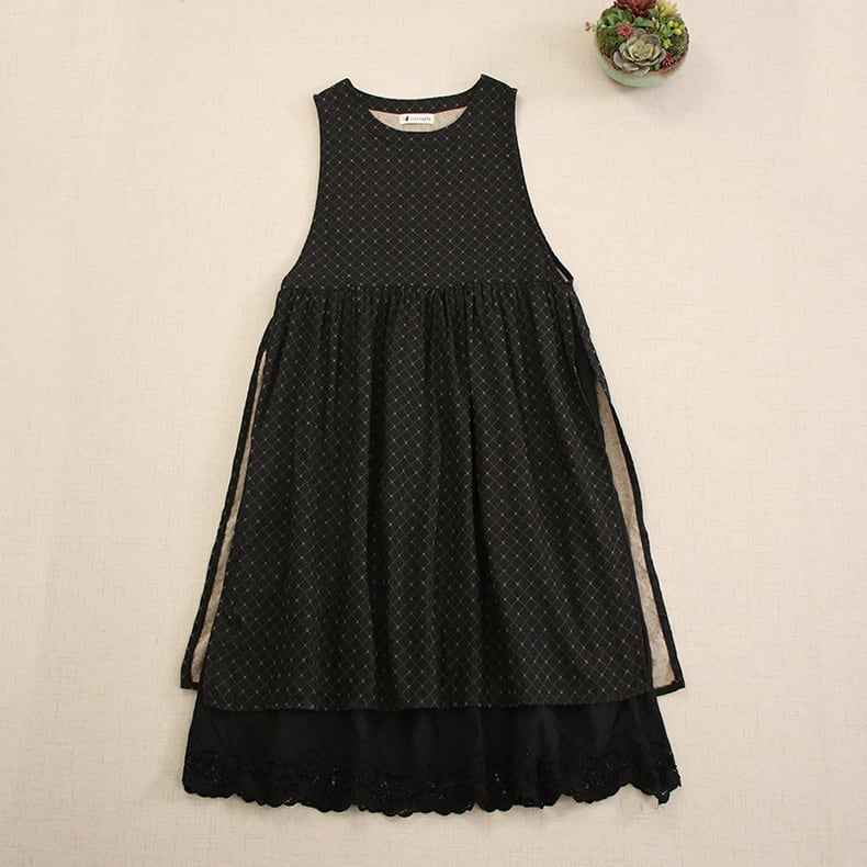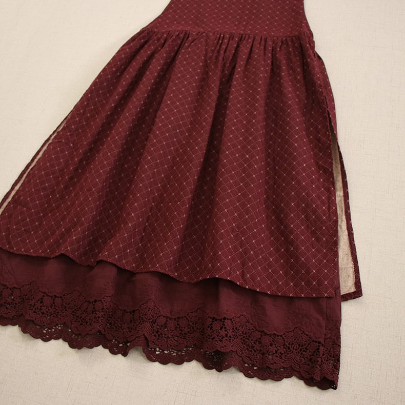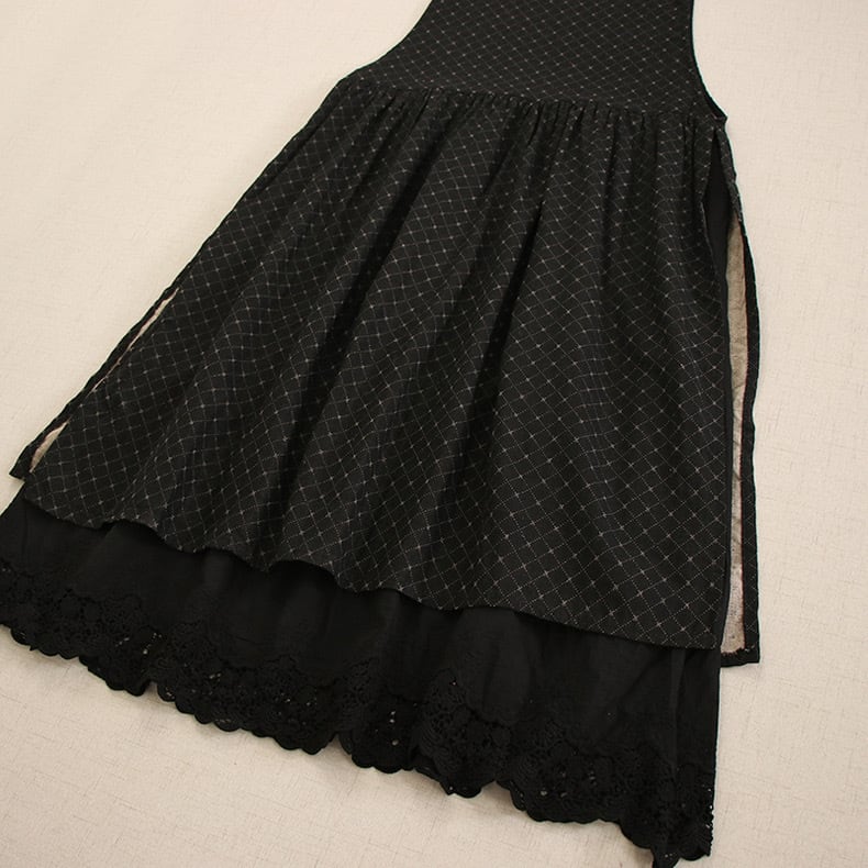チェック柄レースジャンバースカートワンピース 2color fu0162
