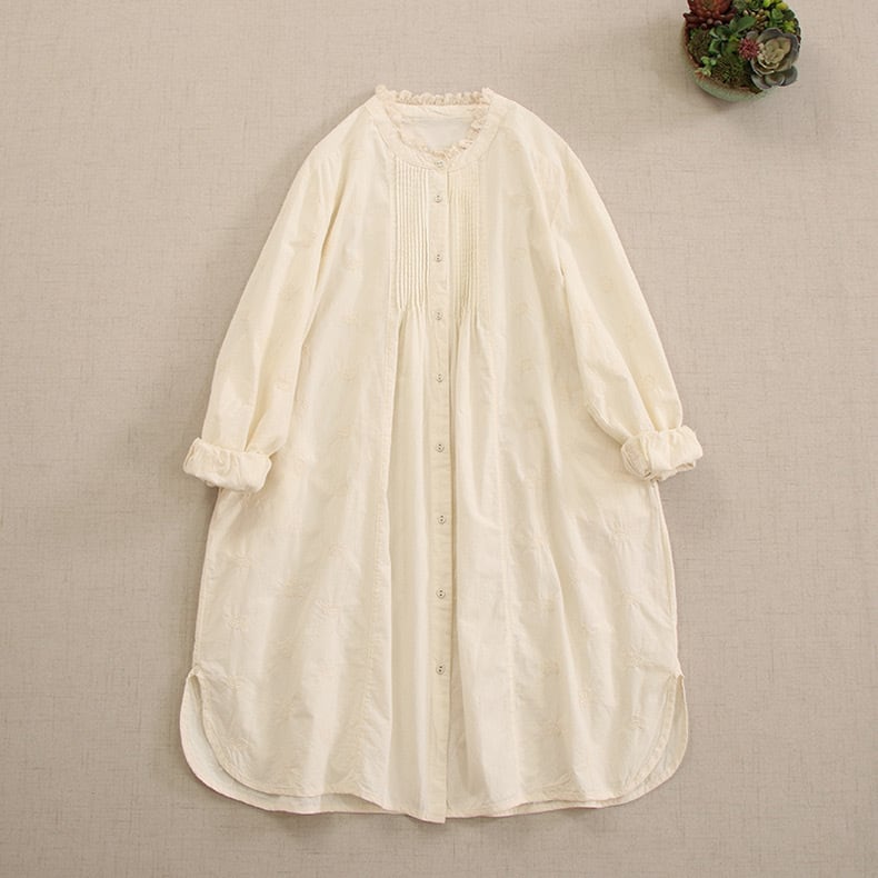 ピンタック刺繍ロングシャツワンピース 3color fu0195