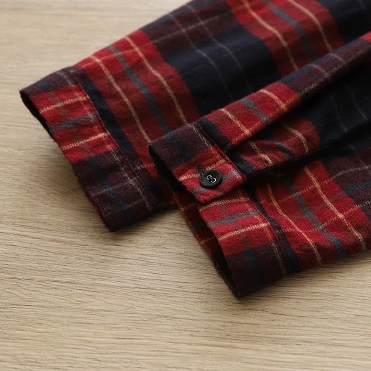 リボン付き起毛チェックネルシャツ fu0213