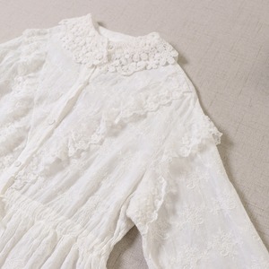 総レース刺繍フリルシャツワンピース ウエストリボン 2color fu0252