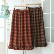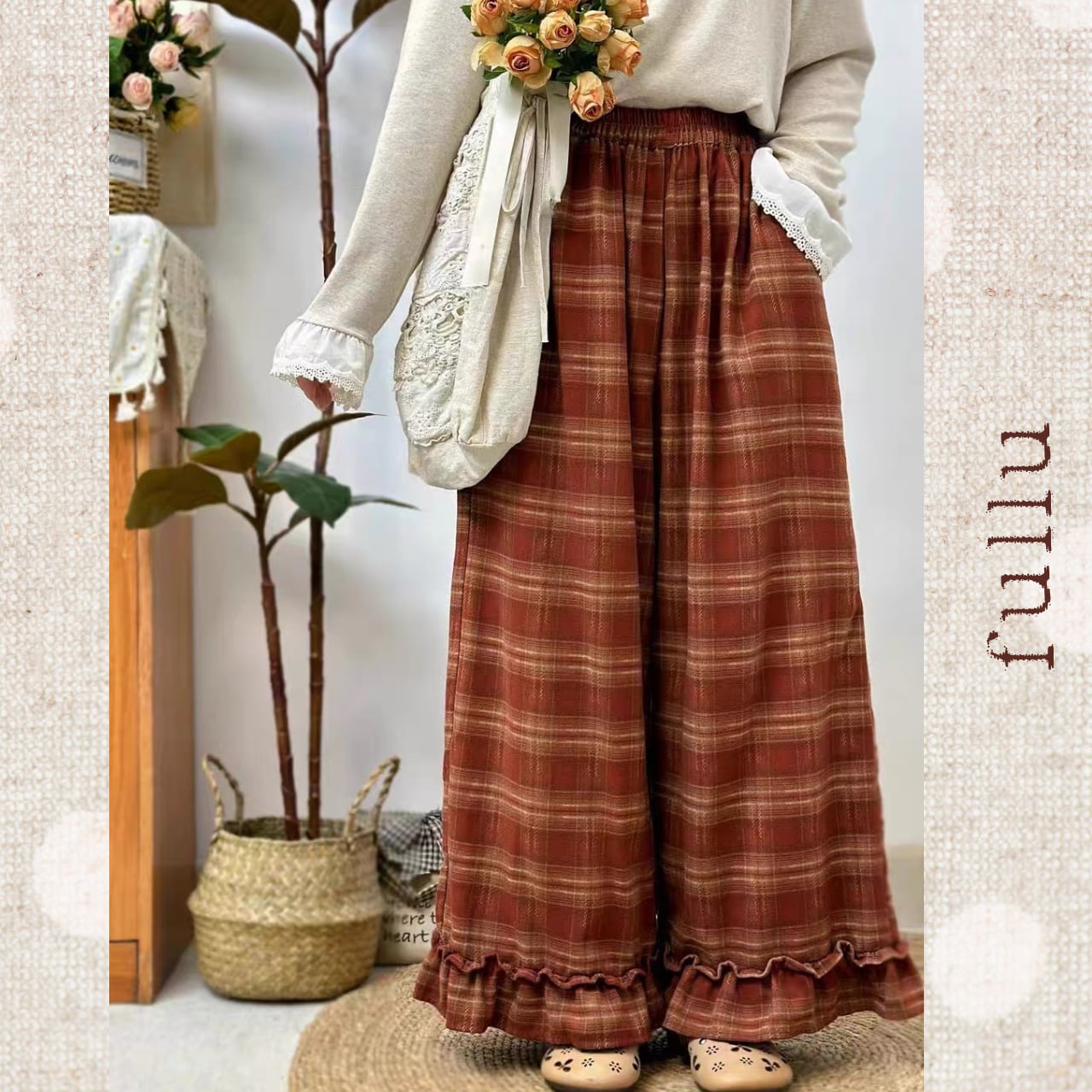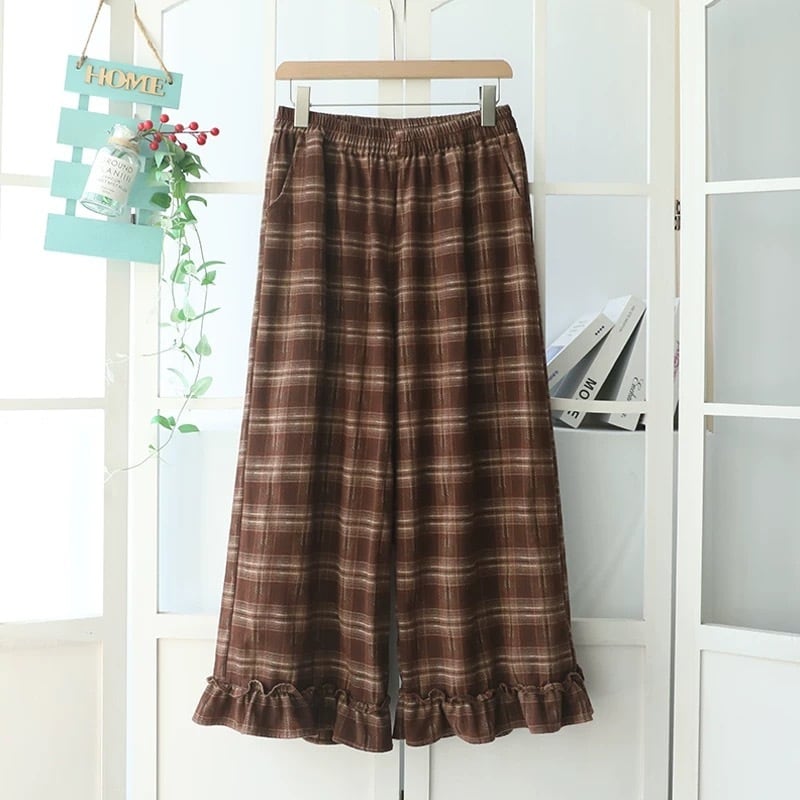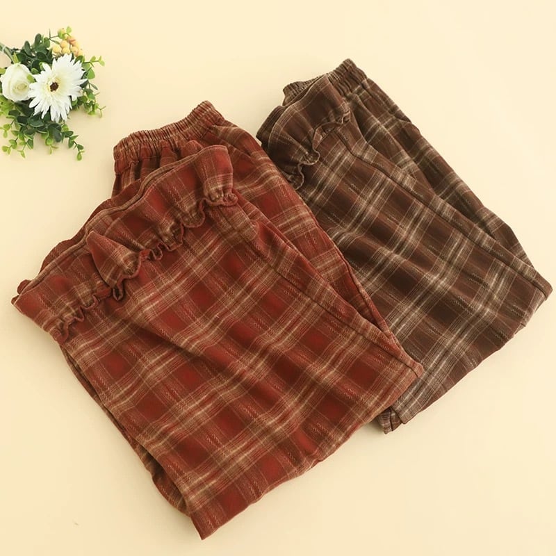 チェック柄起毛フリルワイドパンツ 2color fu0280