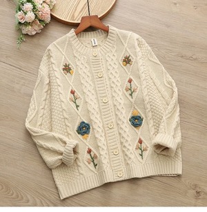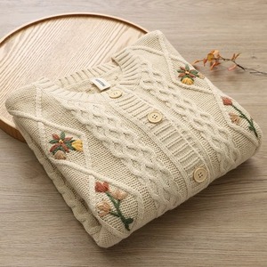 お花刺繍ケーブルニットカーディガン fu0314