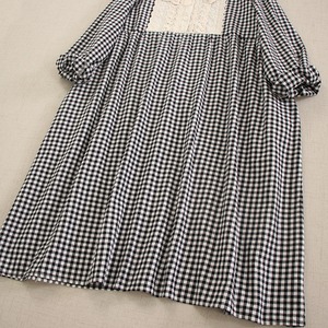 カラーレースチェック柄ゆったりワンピース fu0333