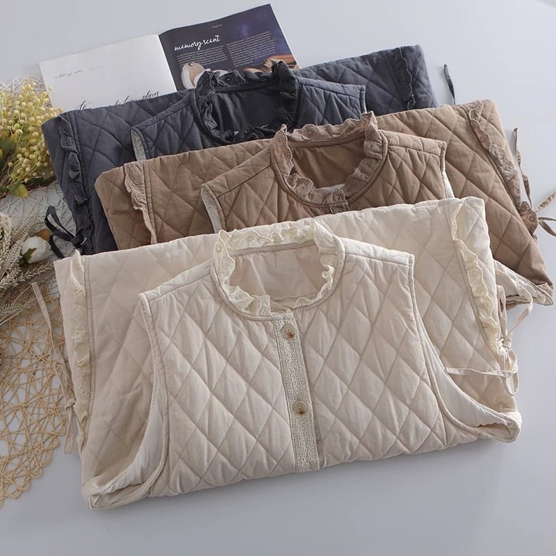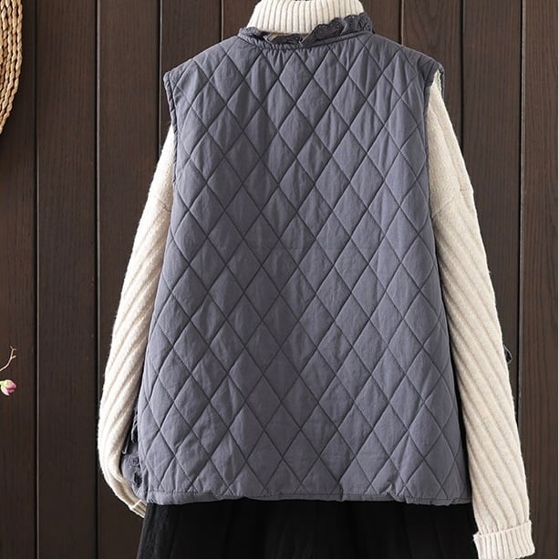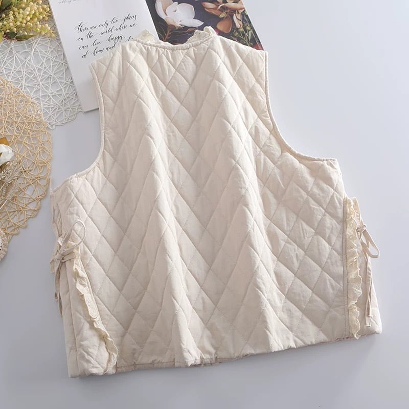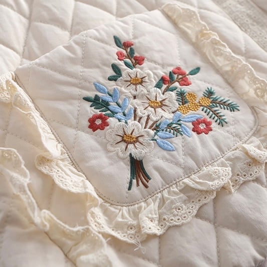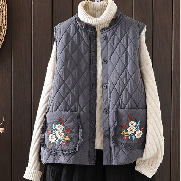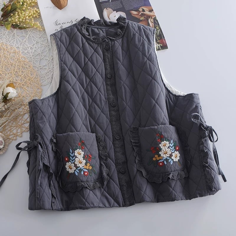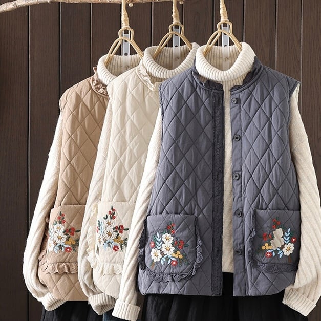 ポケットお花刺繍 キルティングベスト 3color fu0403
