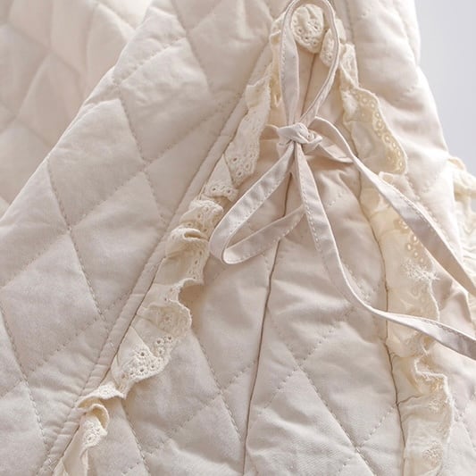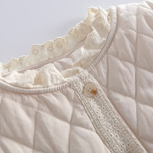 キルティング素材が温かさを保持しつつ、リラックスした着心地のベスト。