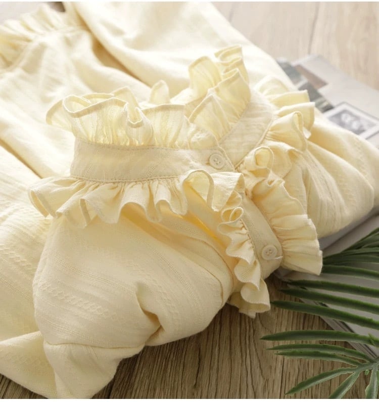 コーデュロイクリームイエローネックフリル裏ボアブラウス fu0469