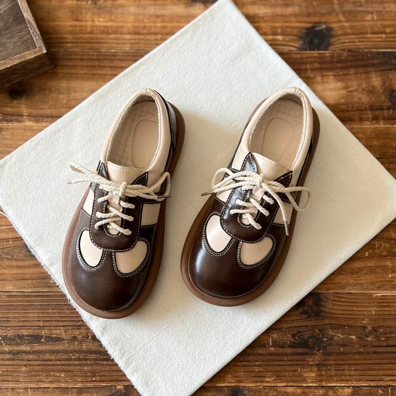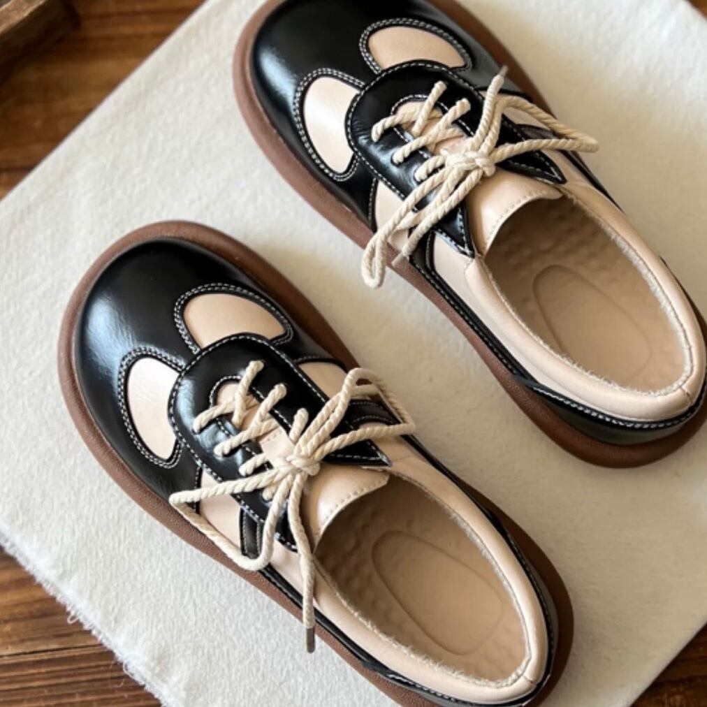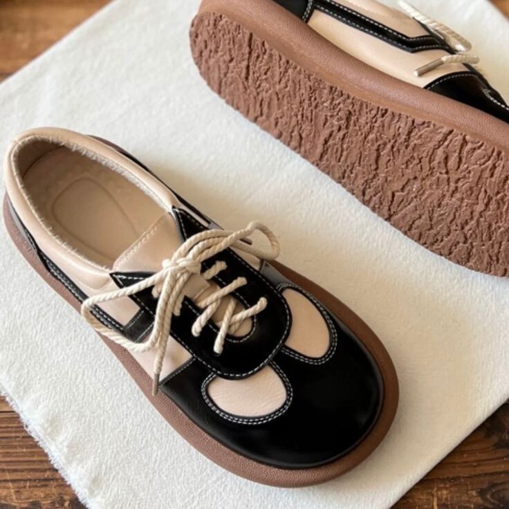 ラウンドトゥバイカラーフェイクレザーシューズ 2color fu0476
