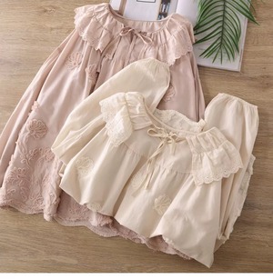フリルカラーレース刺繍ブラウス 2color fu0570