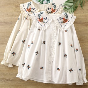 フラワー刺繍のビックフリルカラーブラウス 2color fu0577