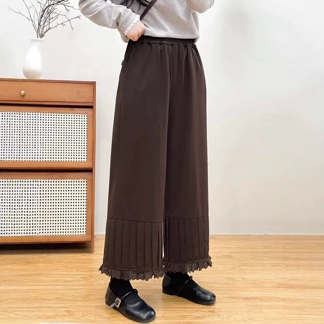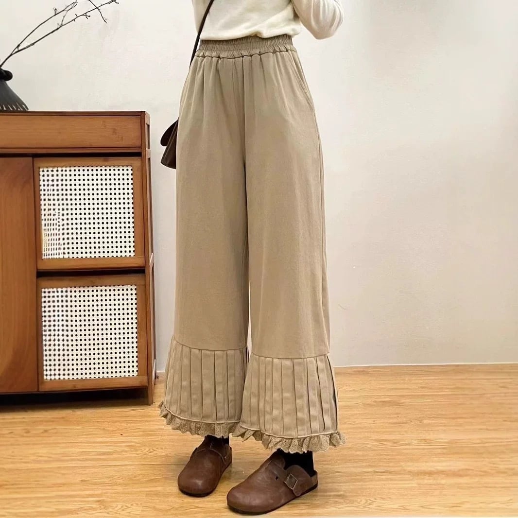 裏ボアプリーツレースナチュラルワイドパンツ 2color fu0579