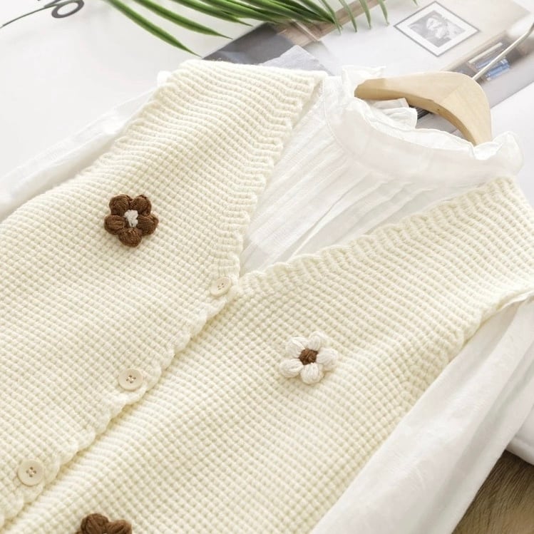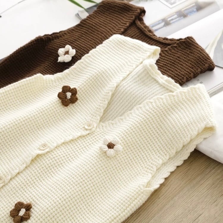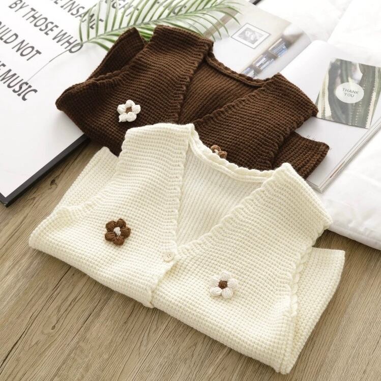 お花モチーフかのこ編みニット 2color fu0608