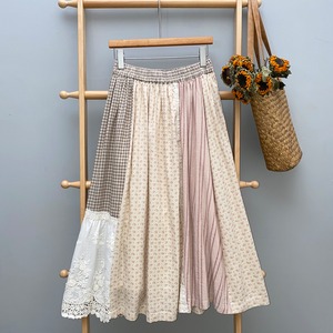 パッチワークコントラストカラースカート fu0609